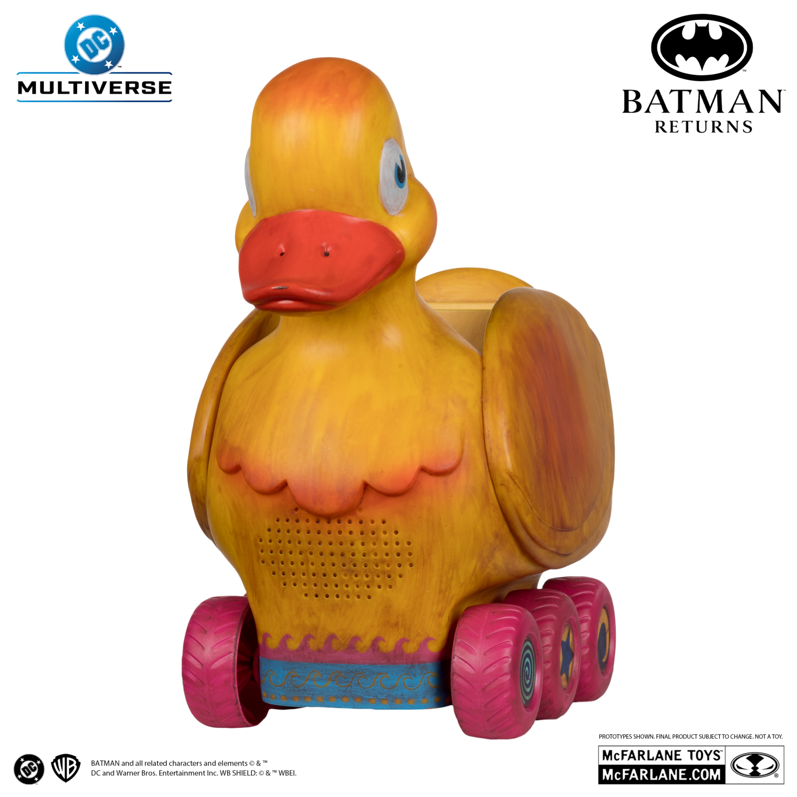 - Includes The Duck Vehicle and The Penguin action figure, figure display base and collectible art card