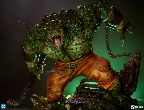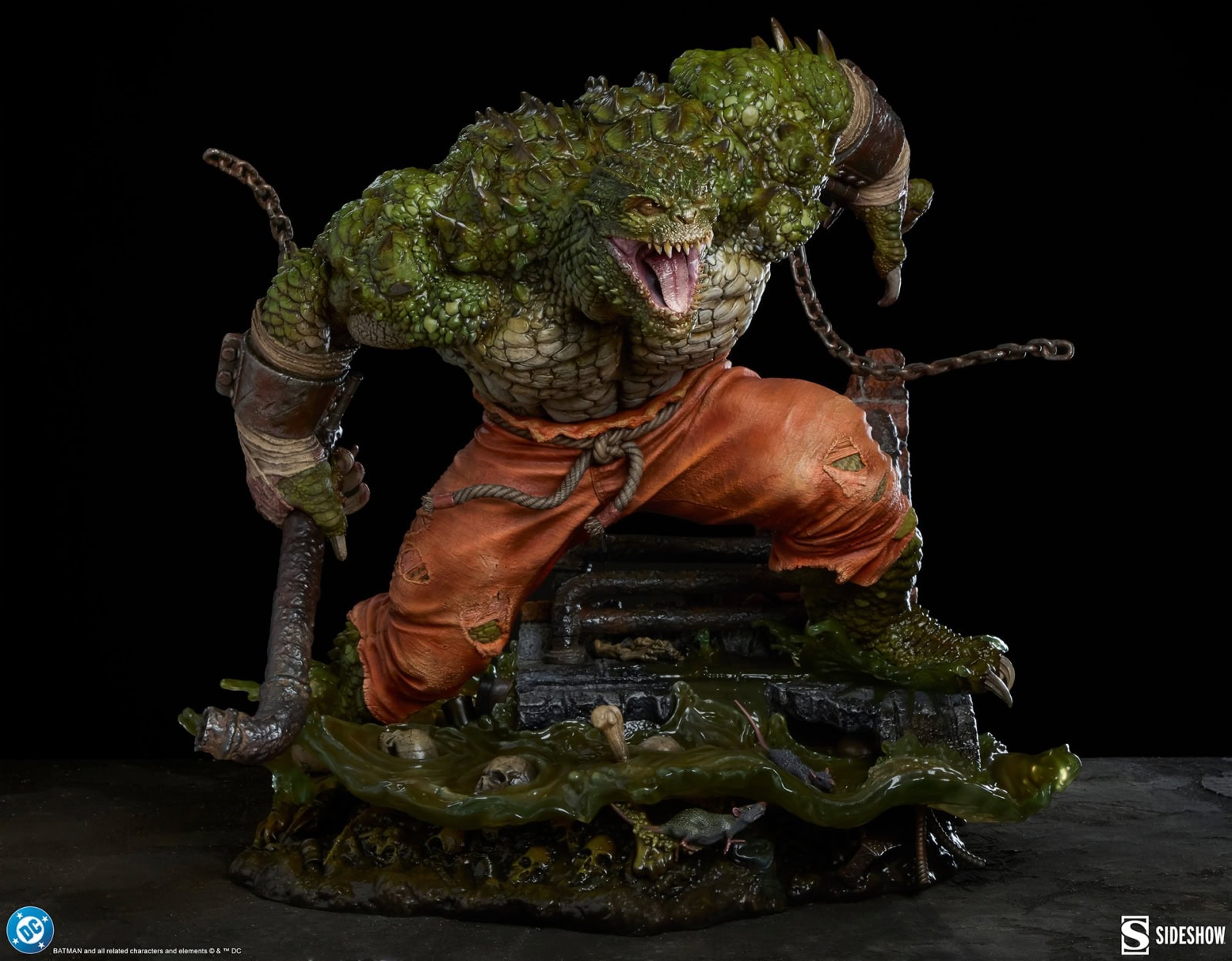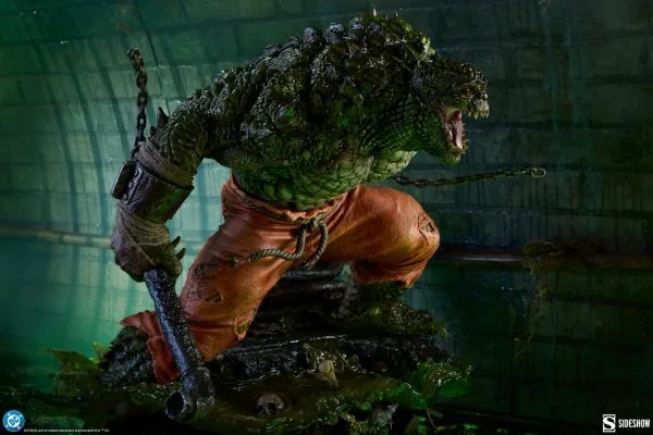 Beware of crocodiles! Measuring 22.44” tall x 24.44″ deep x 21.25″ wide, the Killer Croc Premium Format™ Figure rampages around the city sewers. Waylon Jones’ reptilian mouth unhinges in a furious scream as he tears through the filthy underbelly of Gotham … a place only outcasts, vermin, and fellow freaks may call home. Liberated from his cell, but not from his rare condition, the bulky villain once again plunges into a life of crime and inhuman urges.