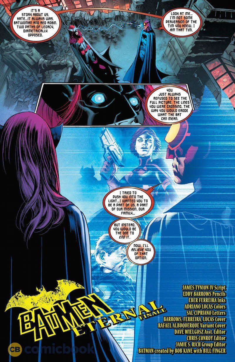 “Batmen Eternal” finale! This is it—the unbelievable conclusion of James Tynion IV’s Batman epic! It’s the last stand of the Gotham Knights, fighting a monster they helped inspire…and a destiny they won’t accept! What will become of the greatest crime-fighting team Gotham City ever saw?