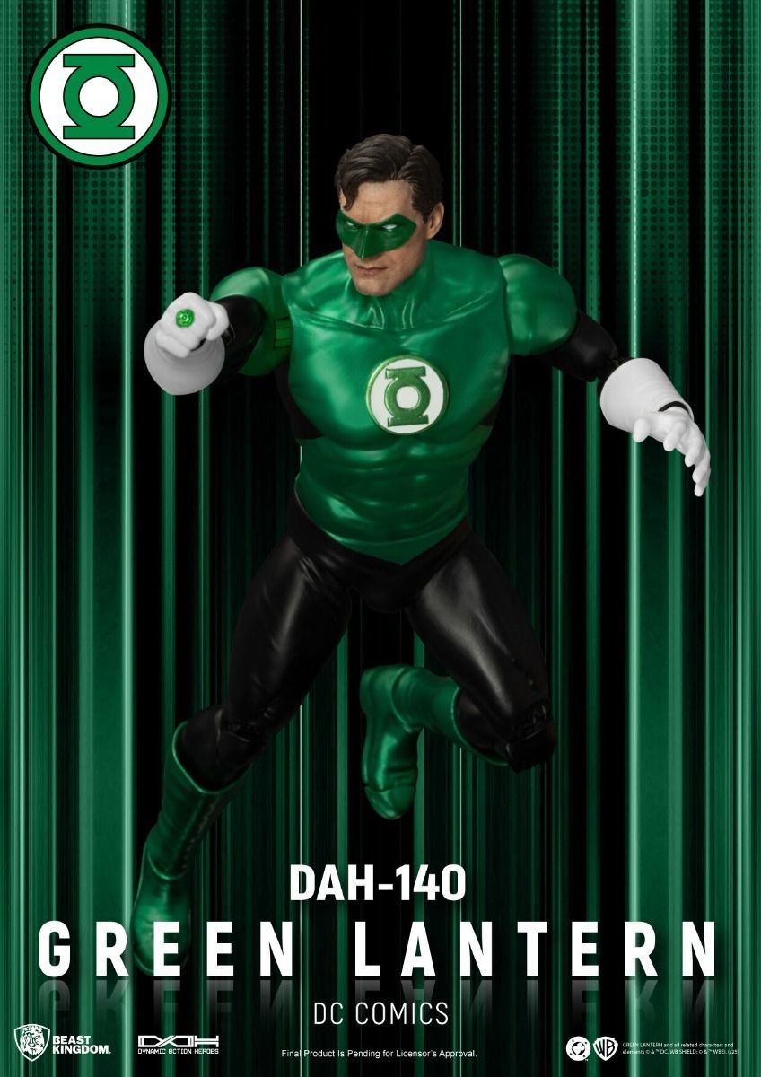 The DAH-140 figure faithfully recreates Hal Jordan’s determined expression beneath his iconic green mask, with precise sculpting and detailed facial features. The metallic green suit highlights his muscular physique, symbolizing strength and leadership.
