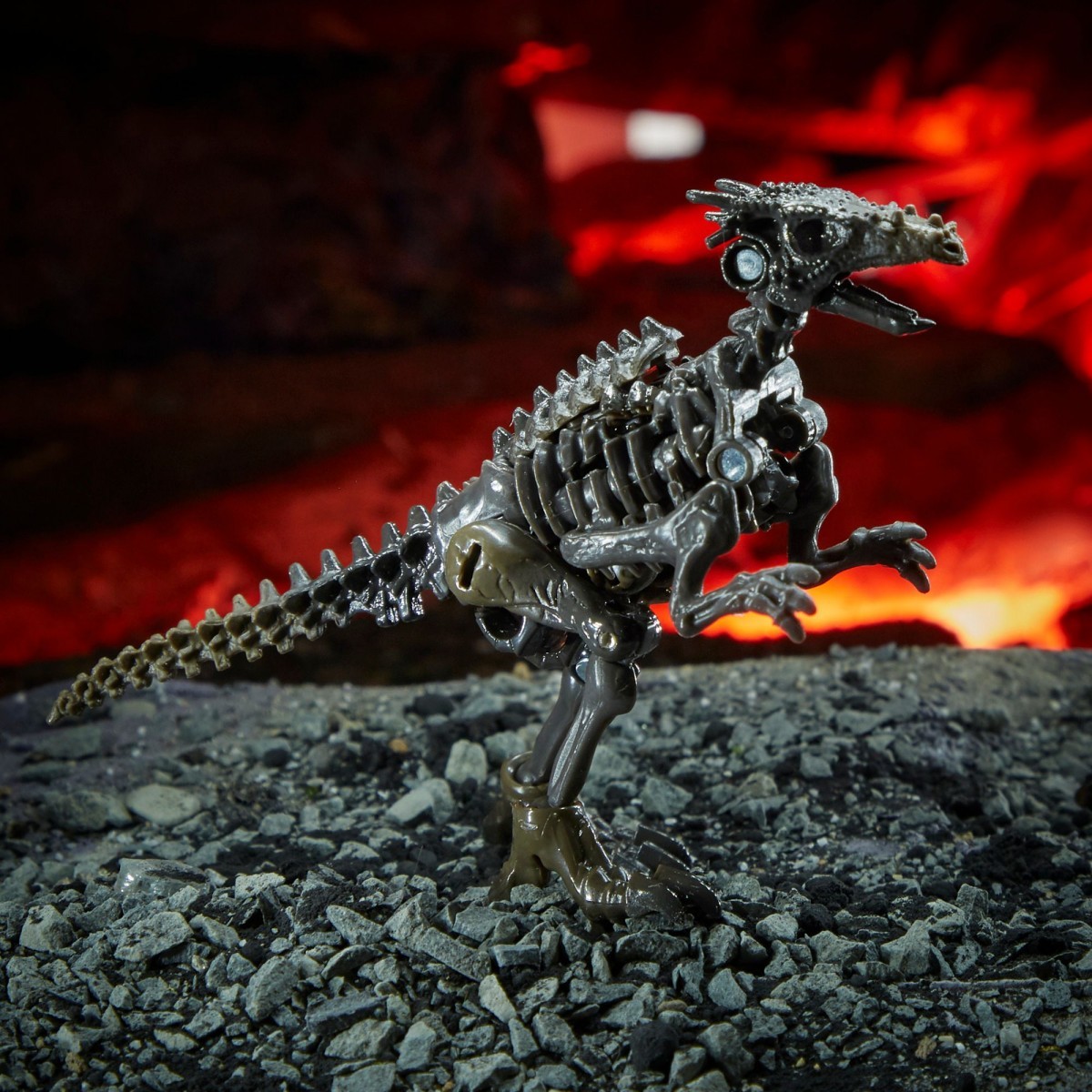 The WFC-K3 Core Class VERTEBREAK dinosaur collectible figure stands at 3.5 inches tall and converts between raptor fossil and robot mode in 14 steps. This PREDACON raptor fossil character also comes with a cool bone weapon accessory when the tail is pulled off in raptor mode.