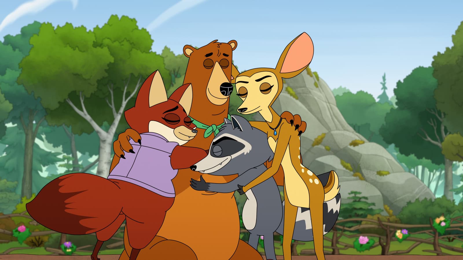 The series features the voice talents of Nick Kroll (Big Mouth) as a raccoon named Ray, June Diane Raphael (Grace and Frankie) as a deer named Fawn, Zach Woods (Silicon Valley) as a bear named Josh, and Sabrina Jalees (Black Mirror) as a fox named Penelope. Check out the trailer and promo images below…