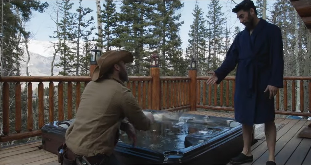 Jesse (Jake McLaughlin) isn’t thrilled that the ski resort town he resides in is mainly shared with wealthy tourists lodging up during that season, but he isn’t necessarily in a position to do anything about it. He plays polite and makes things work, serving as a fixer-upper to a mountain lodge home he once owned, repairing anything broken. Currently lodging there are a couple, Elena (Inbar Lavi) and Spencer (Ray Panthaki), with the latter having acquired an expensive historical painting (claiming that he ripped off the original owner to double down and sell it for its actual price somewhere in the millions), a possession he rambles about to the former who clearly doesn’t harbor any genuine love for him.