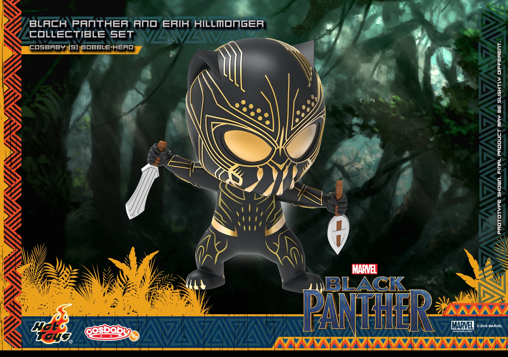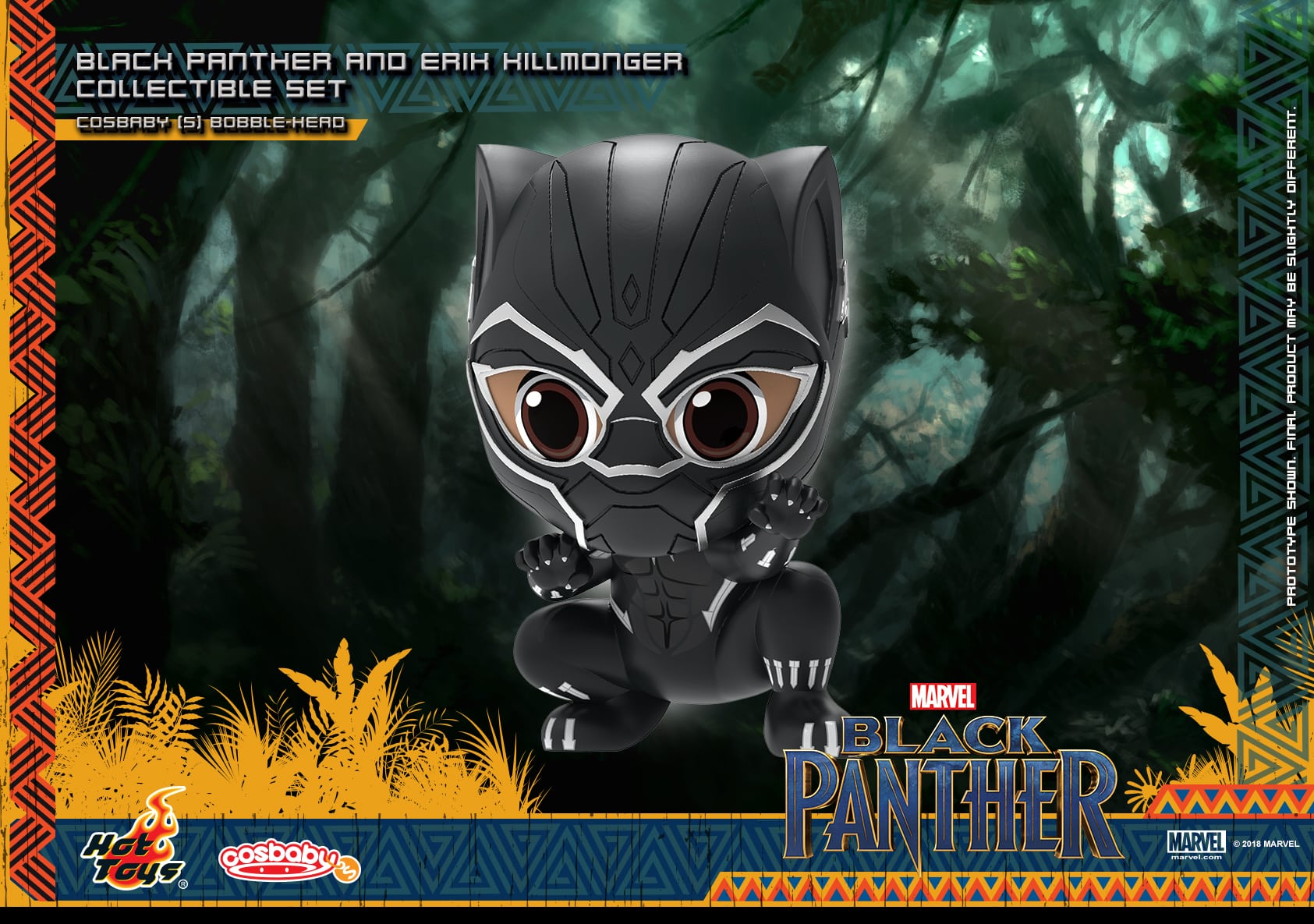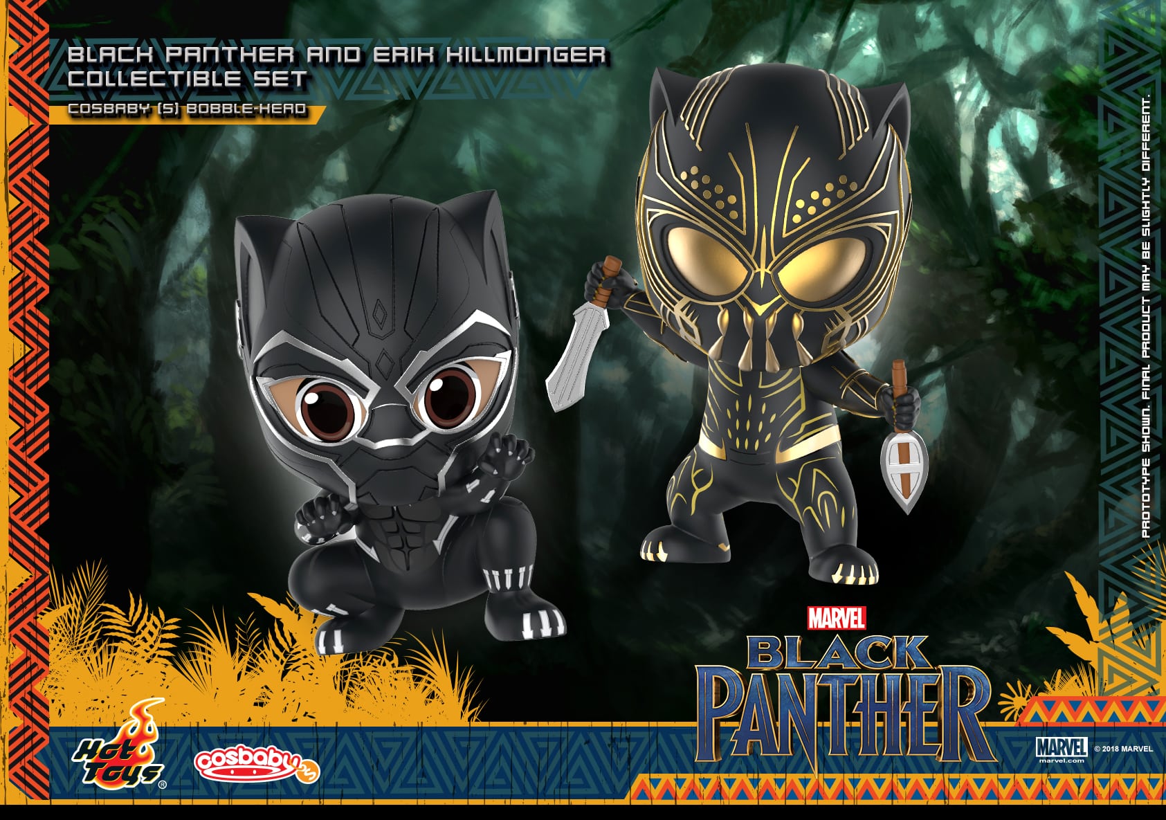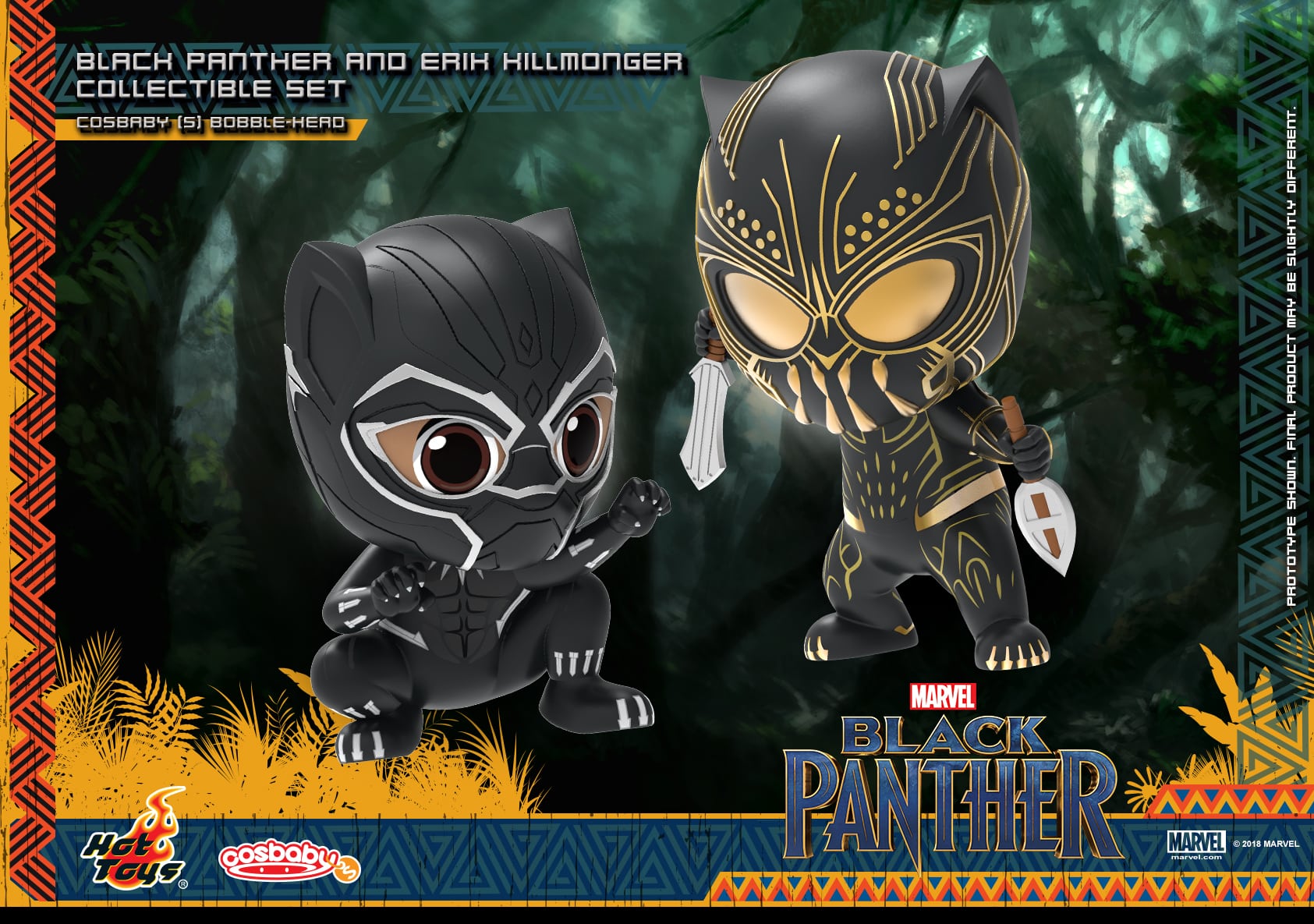 Hot Toys has released a batch of promotional images for its new Cosbaby Bobble-Head set for the Marvel superhero blockbuster Black Panther which includes T’Challa/Black Panther and Erik Killmonger; check them out here…