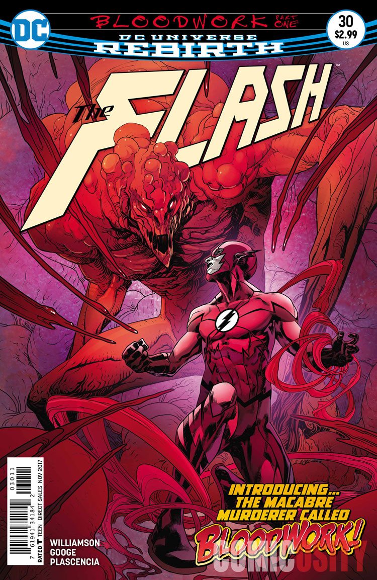 “BLOODWORK” part one! Barry Allen’s personal life is in shambles, his new Negative-Flash powers aren’t working properly, and someone has been tampering with evidence at the Central City Police Department. The Flash is not having a good day, and it’s going to get worse when he comes face to face with Bloodwork, a terrifying new villain with secret ties to Barry Allen.