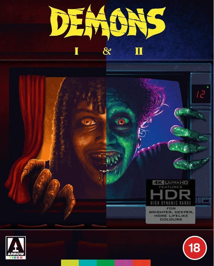 So if you purchased the previous Blu-ray release you may be wondering whether you need to double dip and buy this 4K restoration, and the answer is a massive YES, OF COURSE YOU SHOULD! As well as a crisp and detailed image, neon colours that pop out of the screen like an ‘80s nightclub in your living room – albeit a nightclub full of marauding drooling demons – and a pair of soundtracks that are worth buying a decent set of speakers for, Arrow have dug deep and thrown in some new extras to enhance your experience, most notably a brand new audio commentary for Demons by critics Kat Ellinger and Heather Drain, and one for Demons 2 by critic Travis Crawford that both go into detail about the complicated list of films in the Demons cannon (although these are the only two that are connected) as well as many other informative tidbits for you to consume. There is also a new visual essay by author and critic Michael Mackenzie exploring Dario Argento’s career as a producer (because he produced both movies, see?) and a new visual essay on space and technology in Demons and Demons 2 by author and critic Alexandra Heller-Nicholas, both of which are hugely informative, as is all of the other bonus content that has been ported over from the previous release. Of interest as well is the fact that Demons is presented in its full uncut version in both English and Italian as well as featuring the slightly trimmed and redubbed US cut, so all bases are covered there (and watching it in Italian adds another level of fun if you have never seen it that way before). There is also a 60-page booklet featuring new writing by Roberto Curti, Rachael Nisbet and Alexandra Heller-Nicholas for even more Demons related shenanigans.