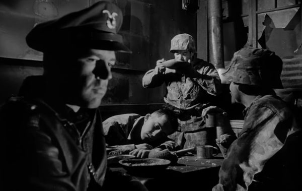 The script by Howard Sackler, who was also embarking on a long, storied career during his early days with Kubrick, sometimes veers into recursive “War is hell and what’s the point?” voice-overs, but for the most part, it keeps the story moving along as the four men argue about the best course of action.