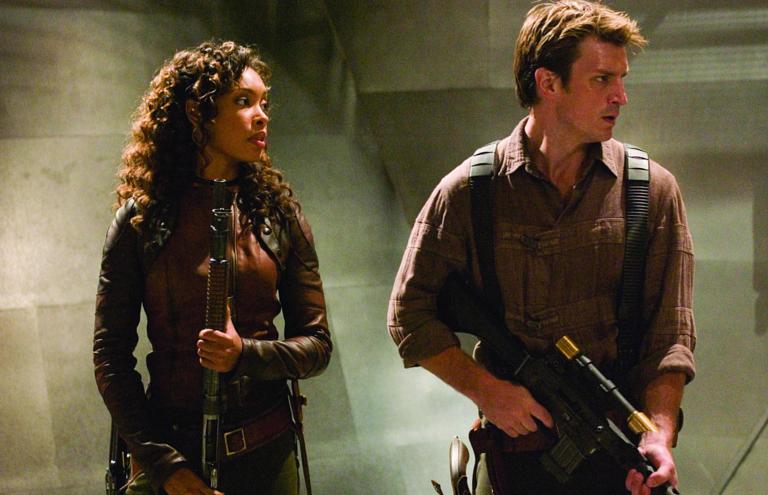The main characters of Firefly are the crew of a ship called Serenity. Malcolm “Mal” Reynolds (Nathan Fillion) captains the craft; he was a member of the rebels known as “Browncoats” who fought a losing civil war against the Alliance. His goal, as he describes it, is: “Find a crew. Find a job. Keep flying.” He and his crew travel between the planets, taking on various jobs from smugglers, criminal kingpins, and other unsavory types.