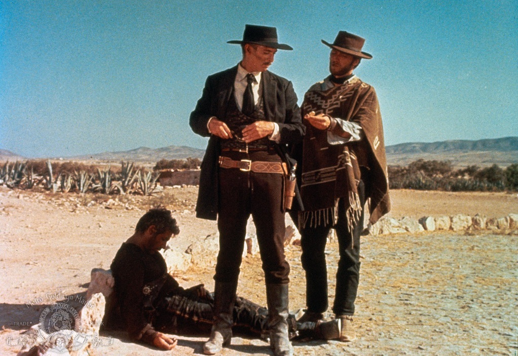 For a Few Dollars More stars Clint Eastwood reprising his breakout role as “the man with no name” from A Fistful of Dollars, although a lawsuit by a producer on the first film forced Leone to maintain in court that the character was actually two different people. However, we’re all free to look at him any way we want – I prefer the standard interpretation that he’s a guy who goes by different names, or simply remains anonymous, because he wants to drift from town to town without anyone being able to track him.