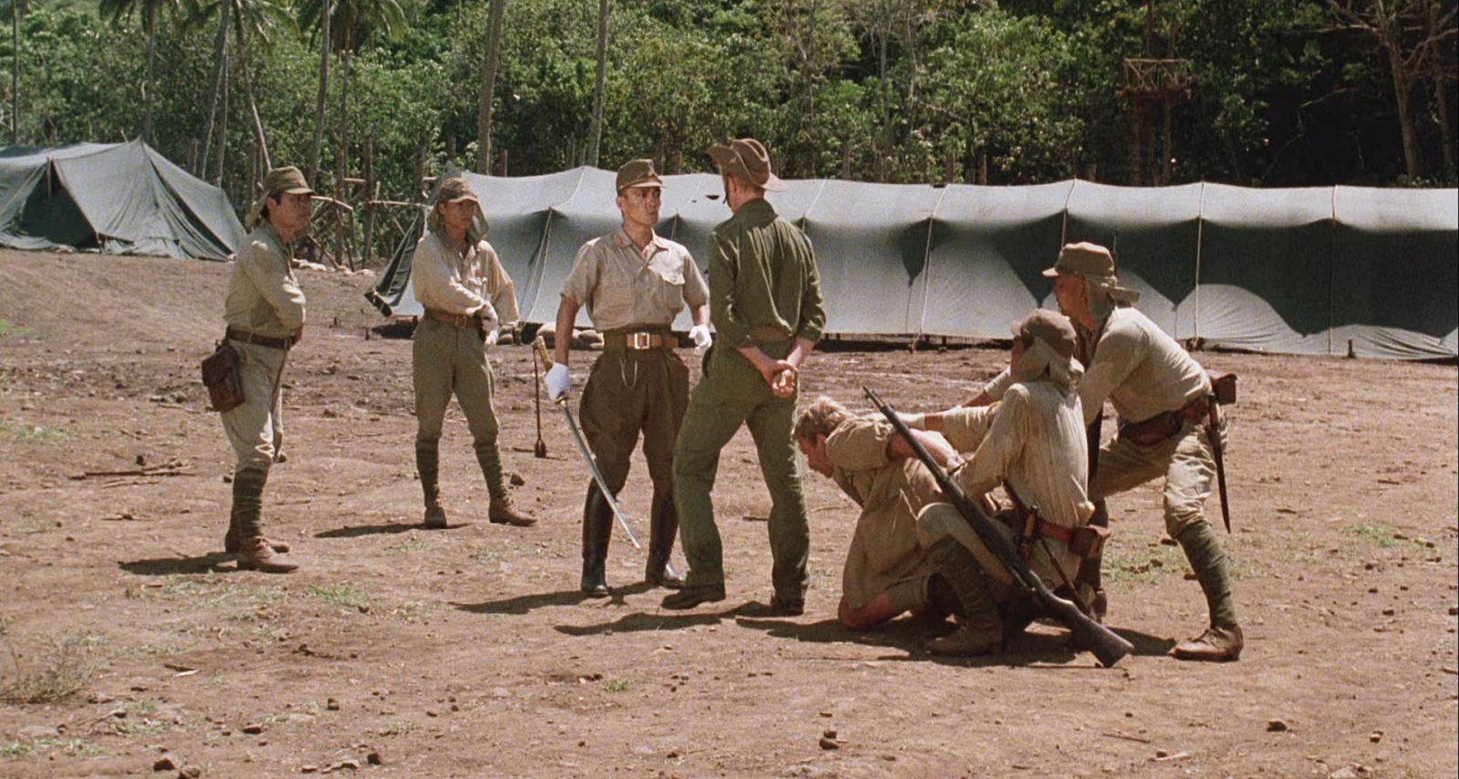 The primary thrust of the narrative involves Yonoi and Hara’s adherence to a traditional Bushido code of honor, which includes the commission of ritual seppuku (suicide) by any of their men who commit shameful acts. Lawrence, forced to witness such an event at the beginning of the film, finds the practice barbaric and tries to understand why his captors would do such a thing, while Hara believes that he can get Lawrence to come around to his viewpoint and thus pass it on to the other POWs.