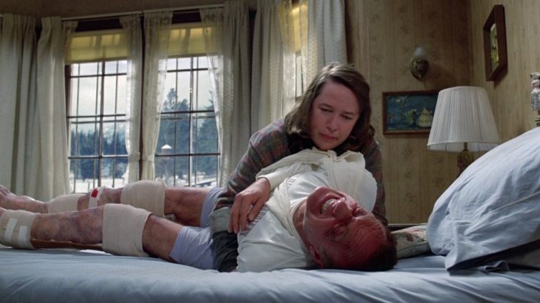 Annie Wilkes, starring Kathy Bates in her first leading role in a movie, pulls Sheldon out of his car and brings him to her house to help him recover. Luckily, she’s a nurse who has medical supplies handy. Unluckily, she’s a huge fan of the author who’s also suffering from a mental disorder, and when she reads his new manuscript and finds out what will happen to her heroine, she demands that he write a new book.