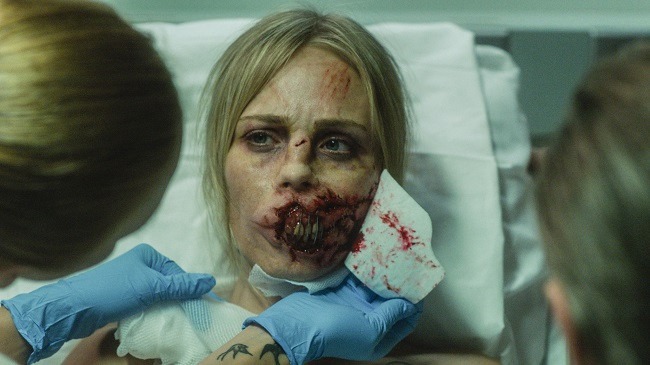 Surviving the accident Rose is hideously disfigured, her jaw having being wired shut and her mouth a lip-less tear on the front of her face, but she is offered the chance of pioneering stem cell treatment by Dr. William Burroughs (Ted Atherton – Max Payne). Rose accepts the free treatment and the surgery appears to go well, her injuries all seemingly healed and no side effects as long as she keeps taking the vitamin drink that the good doctor has prepared for her, but after a while Rose starts to experience what she thinks are wild dreams where people she meets seem to die in violent ways, and Rose soon learns that her looks and new-found confidence actually come at a very bloody cost.