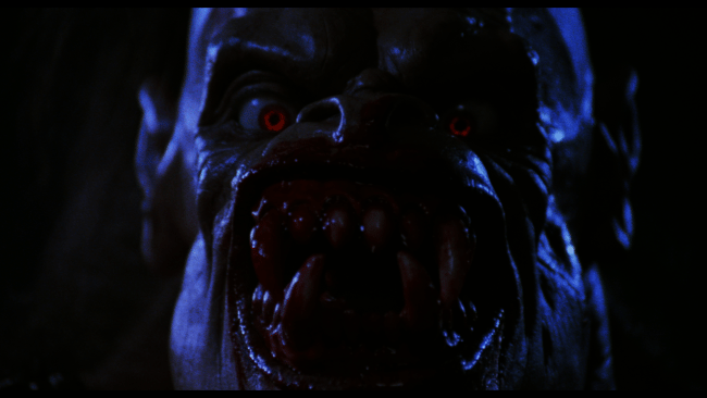 But before we get too carried away by the splendid job that Arrow Video have done with a film that is very much the definition of a cult movie, let us not forget that there are reasons Clive Barker does not like this movie and one of those is the sheer dumbing down of the religious/folk horror aspects of the original short story. Barker’s works are always full of nuance and symbolism, especially with regards to religion and the corruption of it, and as Rawhead Rex the film begins with its main character Howard Hallenbeck (David Dukes – Gods and Monsters), an American visiting rural Ireland with his wife and two young children, there is a hint – just a hint, mind – of a ‘stranger in town’ vibe reminiscent of The Wicker Man, a place where the locals know something that the visitors are so far unaware of but will soon find out to their peril. So far, so Summerisle but the subtly ominous feeling is soon dropped as the initiation of local verger Declan O’Brien (Ronan Wilmot – In the Name of the Father) into the hypnotic power of Rawhead (he’s never referred to as Rex in the film) sets things up for later but this is handled so clumsily and scenery-chewingly big that any sense of understated danger is soon cast aside in favour of a marauding monster wearing a shag pile carpet, mouldy biker boots – oh yes, this deity has footwear – and with a mask that doesn’t really move properly, giving it the look of a prototype Mr. Snuffleupagus from Sesame Street, only without the trunk and not quite as traumatising. And that’s not mentioning the glowing red eyes that look ever so slightly lazy, like they didn’t quite fit inside the hood properly and one kept dropping slightly but it was too late to take it back to the shop so they had to go with it.