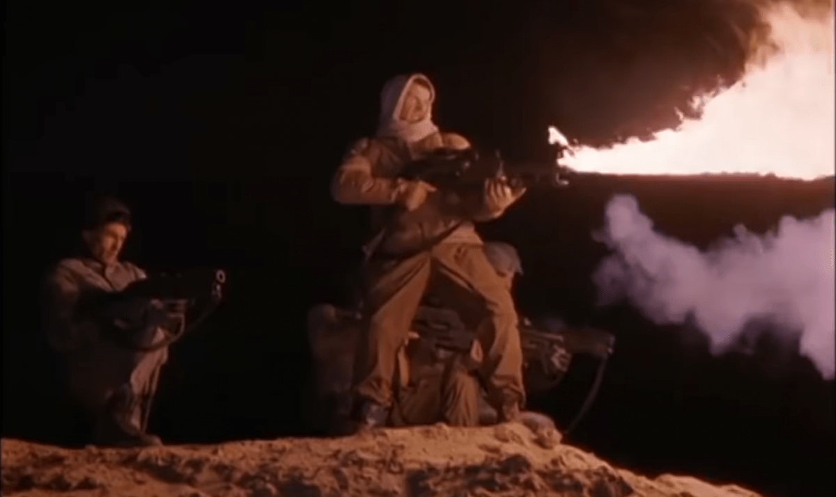 The real answer, of course, is the limiting $20,000,000 budget that will pay for your cast, crew and location shooting but doesn’t leave enough to make convincing matte paintings, CGI backgrounds or in-camera effects (although the severed limbs caused by the screamers look pretty good), meaning that the superimposed screamers and extremely cheap fire effects look terrible on Blu-ray; to be honest, they didn’t look too clever on VHS but the HD clean up means that every join can be seen and it does take you out of the film, especially if you have just had a nice wide shot of one of the gorgeous desert landscapes that doesn’t look overly false, and it cheapens the overall experience.
