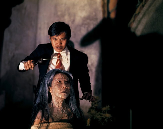 Also on this disc is Bewitched, from 1981. Sticking with horror, Bewitched sees police detective Bobby Wong (Melvin Wong) investigating the death of a young girl whose body was found with a large metal spike hammered into her head. Suspicion falls on the father, and a tale of a wronged lover and black magic unfolds, resulting in Detective Wong seeking a priest to exorcise the demons that are responsible for driving folk mad.