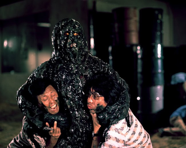 But the fun continues on disc two, first with The Oily Maniac from 1976 which sees Danny Lee return (he will pop up a few times in this set) as Shen Yuan, a crippled lawyer who uses crutches to walk, and when he is called to defend a businessman who accidentally kills a man attacking his daughter, he is also given a spell that turns him into the titular slimy monster, complete with superhuman strength and a desire to right the wrongs the local criminal gangs have been causing.