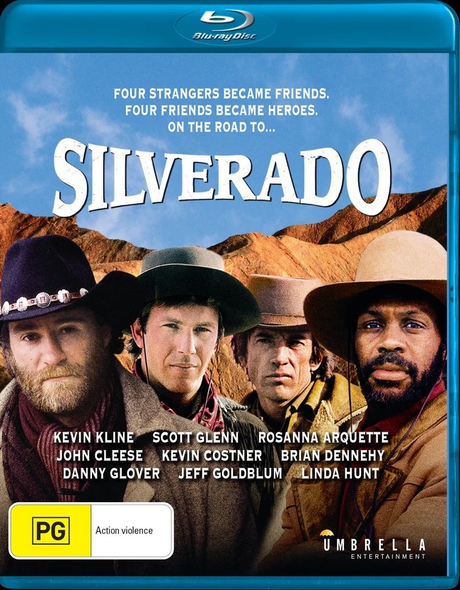 So it’s understandable if you’re wondering why I’m reviewing Silverado, which Australian company Umbrella Entertainment has issued on a region-free Blu-ray disc. I requested a copy of it because I’ll also confess that I’ve never seen it, despite being a fan of Lawrence Kasdan, who directed the film and wrote the script with his brother, Mark.