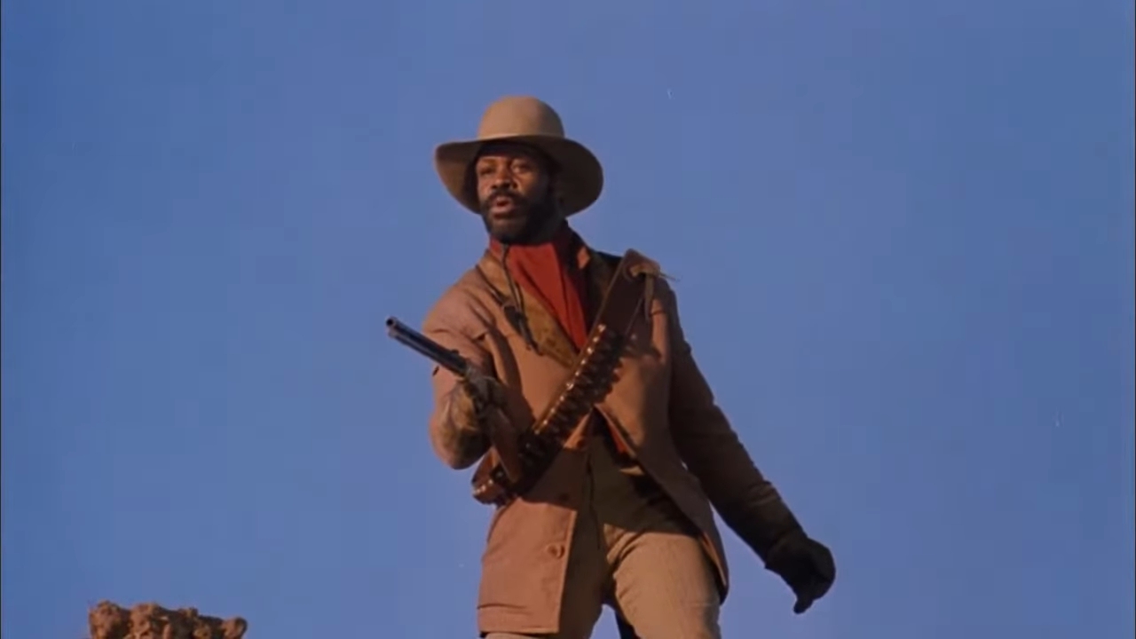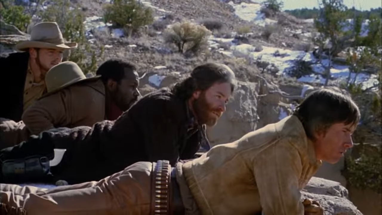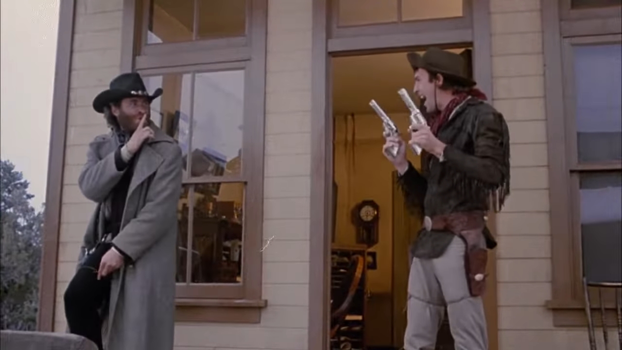 I was also intrigued by Silverado’s cast, which features: Kevin Kline, Scott Glenn, Kevin Costner, and Danny Glover as a quartet of cowboys who fight corruption and racism in a frontier town; John Cleese as an overbearing sheriff who wants the four out of his town as soon as possible; Brian Dennehy as the corrupt sheriff of the town Silverado; Linda Hunt as a saloon owner; Jeff Goldblum as a local gambler who’s friends with that corrupt sheriff; and Rosanna Arquette as a potential love interest for two of the cowboys.
