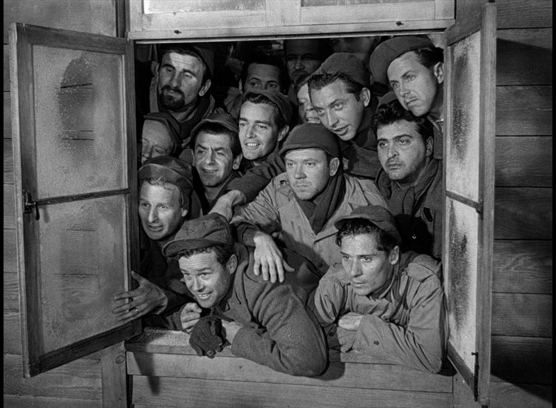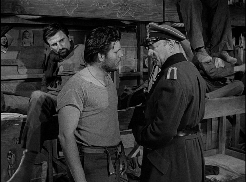 Animal is the source of many of Stalag 17’s funniest moments, but he never feels like he’s in a different movie when the tone switches to something serious, such as the arrival of two new POWs, one of whom is suspected of bombing a German train. When the informant in their midst provides evidence of the new man’s culpability, the others rally to save him from being sent to SS headquarters in Berlin while also trying to find the snitch.