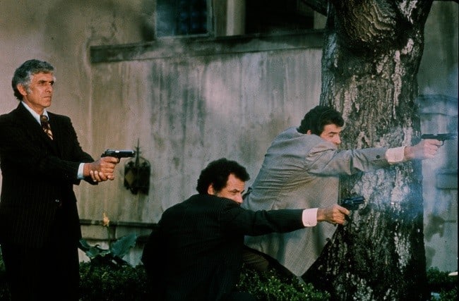 But whereas The Godfather had James Caan to provide the testosterone, switching between inherited leadership and unfocused rage at the swing of a fist, The Don is Dead has Robert Forster, an actor with a welcome presence in most movies that he is in but also a man with a limited number of facial expressions, and all of them involve a grimace to some capacity. As this movie is a contemporary piece Forster gets to wear a lot of absurd 1970s suits that may have added a little flair to proceedings at the time but given Frank Regalbuto’s character arc of starting out as an unhinged violent mobster through to his development into a slightly more unhinged and violent mobster it makes him very hard to take seriously as a threat when he’s dressed like he’s about to go on stage with Roxy Music. He ain’t Sonny, he’s certainly not Michael but Fredo… maybe.