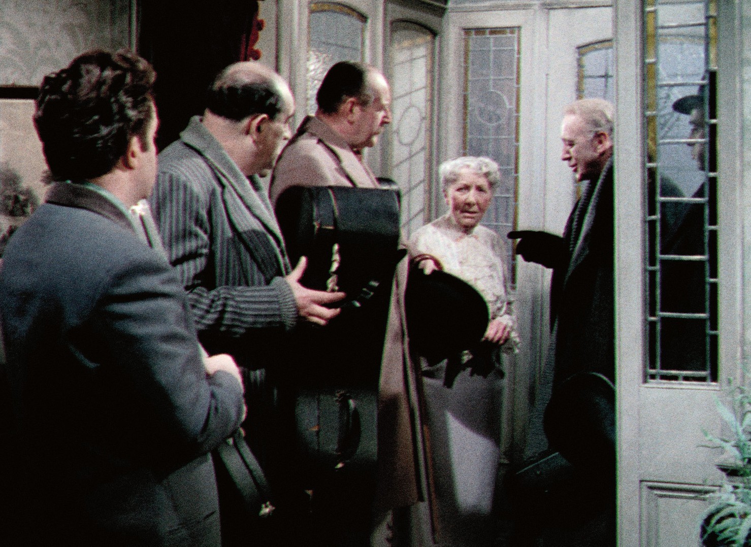 • Cleaning Up The Ladykillers (6:07): This is a before-and-after comparison of the restoration work done by Studio Canal in 2020. The film didn’t look that bad previously, but there was a fair amount of dirt and other muck that had to be digitally cleaned to restore its full Technicolor glory. Side note: The Ladykillers was the last three-strip Technicolor film made in the UK.