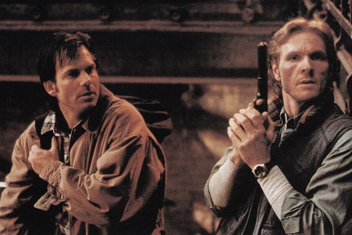 Despite this being a retelling of John Huston’s The Treasure of Sierra Madre the plot of Trespass is completely daft in that Don (William Sadler – The Mist) and Vince (Paxton), a pair of firefighters from Arkansas, are handed a treasure map by a man looking to repent his sins before he dies in a house fire. Thrilled by the idea of claiming gold artefacts stolen from a church 50 years previous the two firemen make their way to East St. Louis to search a disused factory for the loot, but once there they get more than they bargained for when tramp Bradlee (Art Evans – Fright Night) shows up to see who is ransacking his home. However, things take a turn for the worse when Vince witnesses gang leader King James (Ice-T) kill another gangster and the scene is set for a standoff as Don and Vince are cornered in the derelict building by the bloodthirsty gang with little chance of escape with their lives, let alone the gold.