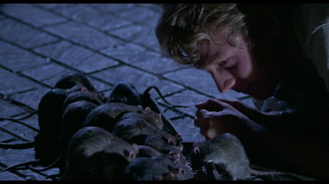 Although both movies are marketed as horror movies, there is very little gore, violence or – to use that favourite phrase of the BBFC – sustained threat to really call them that, although of the two it is Willard that provides the most fun and entertainment in that department. The strength of Willard is in the writing and the performances that the fairly high-profile cast turn in, especially Ernest Borgnine and Bruce Davison, who appears in nearly every scene and pretty much carries the whole film on his vulnerable performance that gets across the loneliness that Willard has to face every day despite being surrounded by people. Despite the ludicrous nature of a story where an army of rats is trained to attack by a social outcast it is all taken relatively seriously, even though you know that the cast and crew must be sniggering away to themselves between takes, and the feeling of wanting to be taken seriously gives the film an accessible edge despite the sinister undercurrent of the plot. As previously stated, the film is light on gore and only really veers towards horror during the final 15 minutes, by which time you’ve spent enough quality time with Willard, Mr. Martin and everyone else to at least get invested in what happens to them.