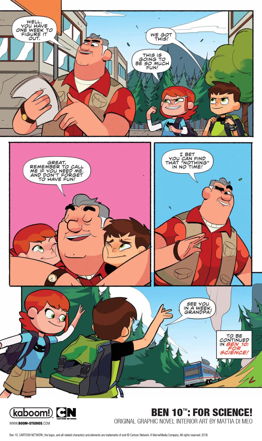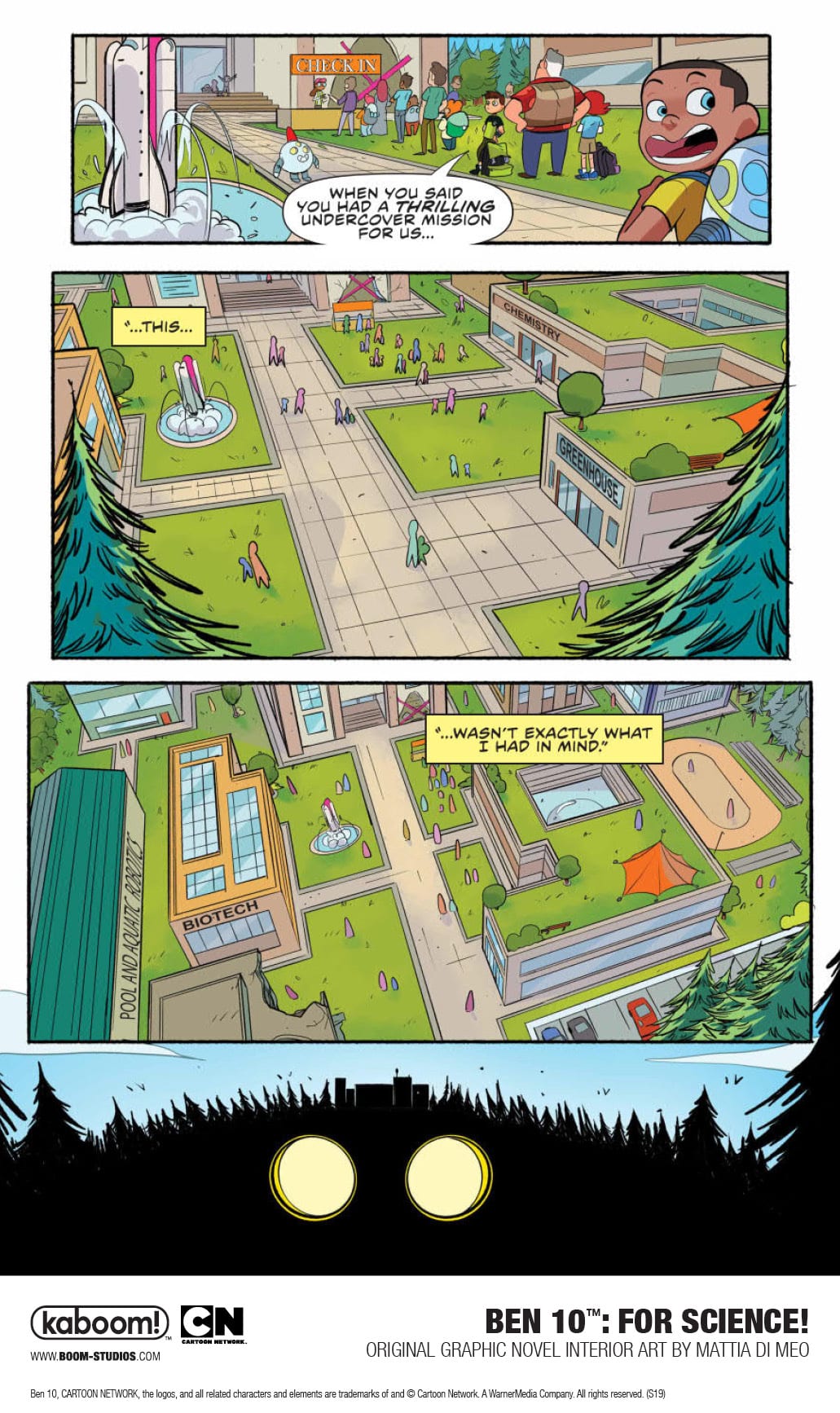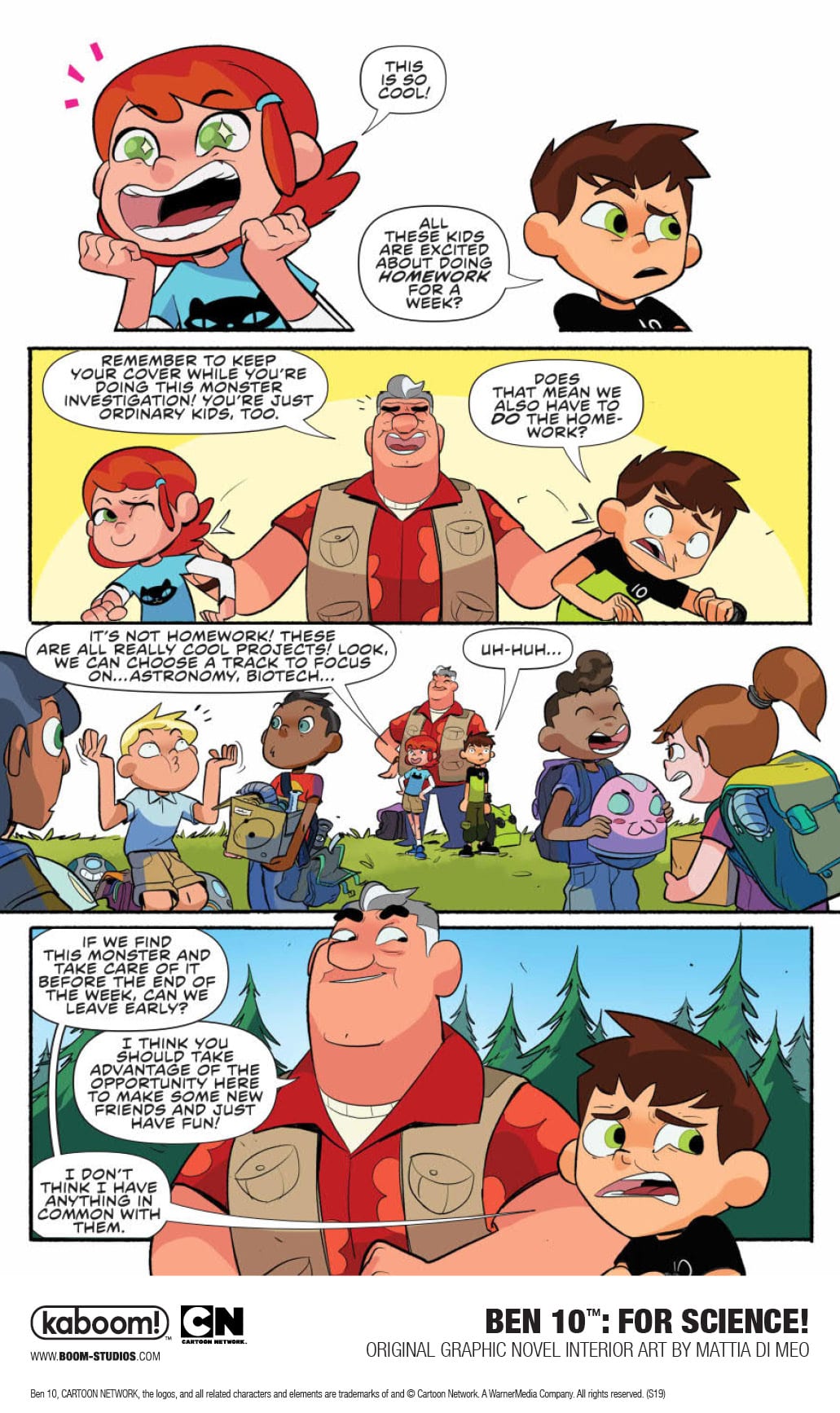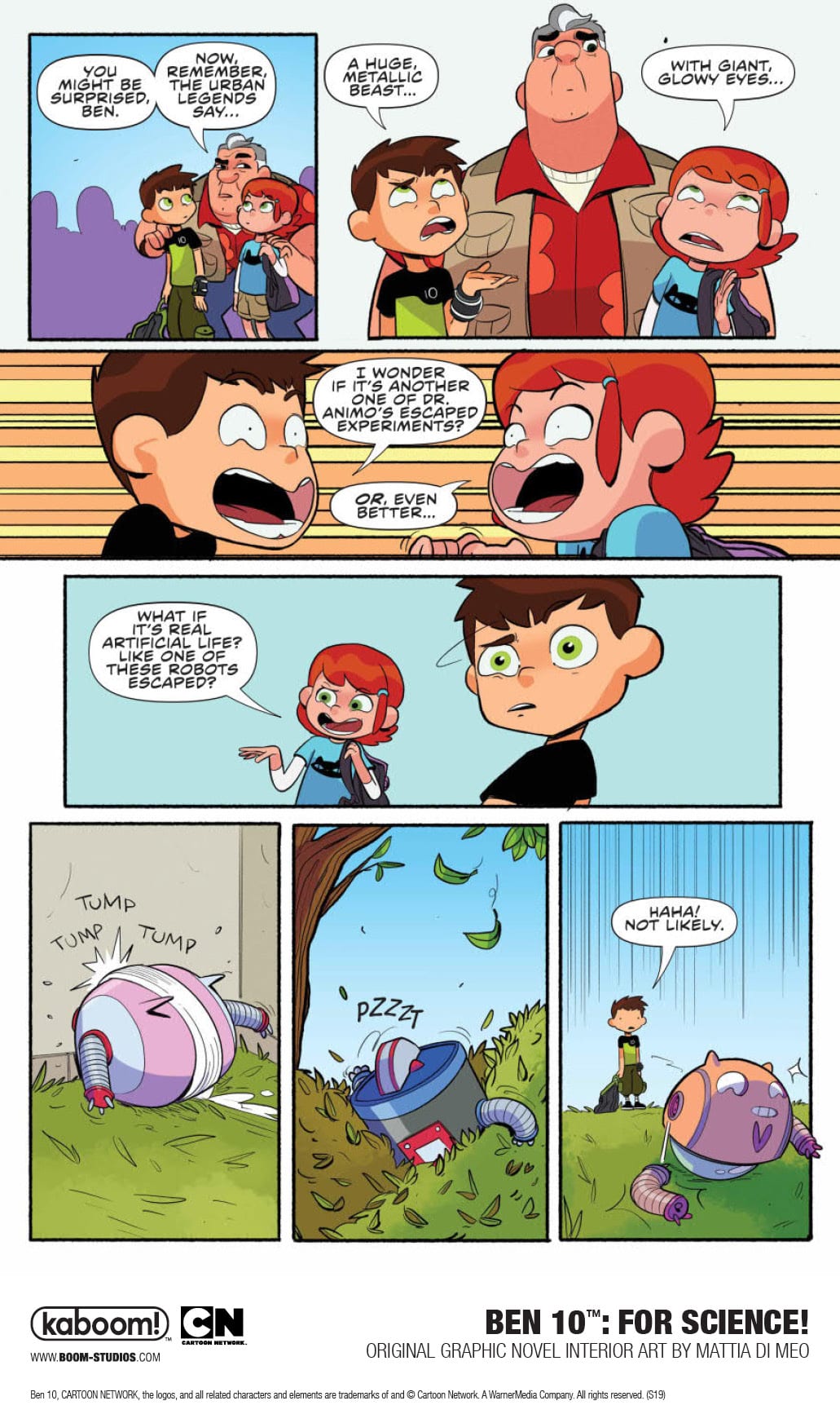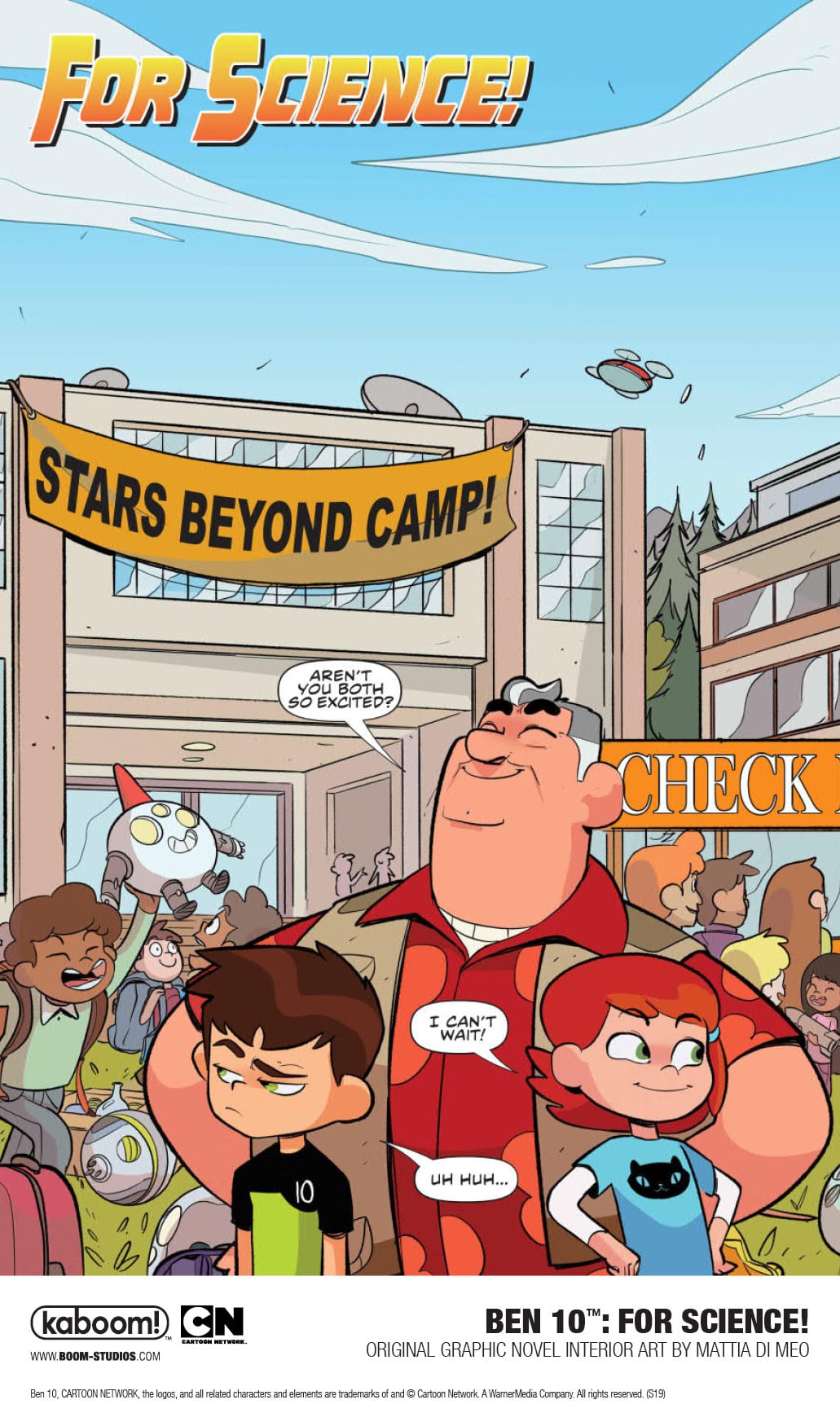 In BEN 10™: FOR SCIENCE!, from Rainbow Award-winning writer CB Lee (Not Your Sidekick) and artist Mattia Di Meo (Adventure Time/Regular Show), Ben and Gwen go undercover at the Stars Beyond Science Camp when rumors of a strange monster attacking kids reaches them. Despite his apprehension at doing science projects during summer vacation, Ben quickly makes a lot of new friends in the Robotics track. But when his friend Jesse’s robot goes missing, Ben and Gwen will have to use all the tools in their arsenal to deal with what comes next.