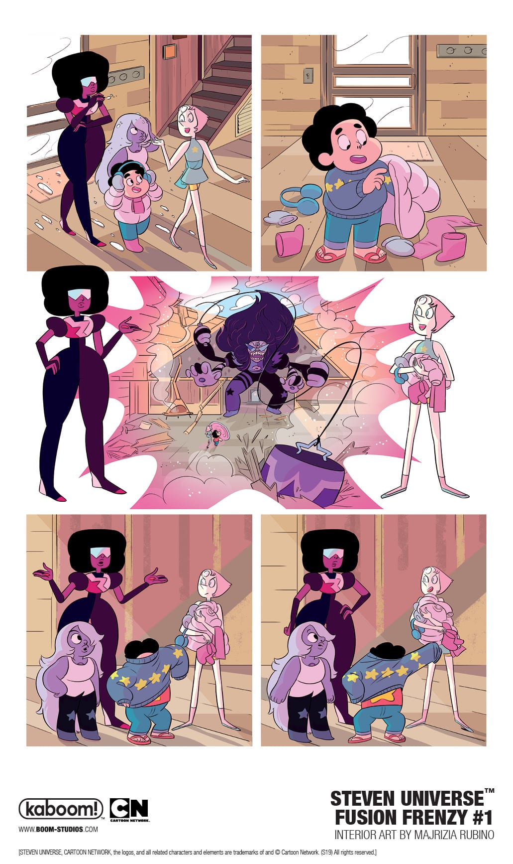 STEVEN UNIVERSE™: FUSION FRENZY #1 is an oversized one-shot comic book special inspired by the world of the Cartoon Network Emmy® Award-nominated series, Steven Universe™. This jam-packed special contains stories about everyone’s favorite fusions.