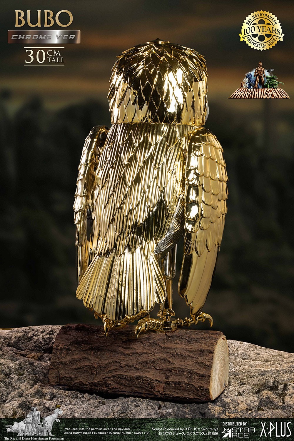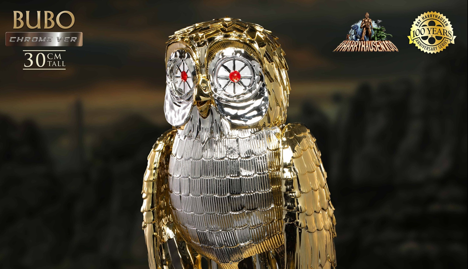 Introducing the Star Ace 30 cm Soft Vinyl Chrome Bubo the Owl, a mesmerizing collectible that will delight fans and collectors alike! One of Ray Harryhausen’s most beloved creations Bubo, the mechanical owl, is literally a gift from the gods. This small gold bird with ruby eyes has proved to be one of the most enduring and endearing of all the creatures Harryhausen brought to the screen.