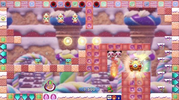 Bubble Bobble games of the past have featured a fixed screen that players must complete before they can progress on to the next stage, but in Bubble Bobble Sugar Dungeons the dungeons change every time you step into them. It’s also not necessary to defeat every enemy in the game, trap them in bubbles and leave through the exit.