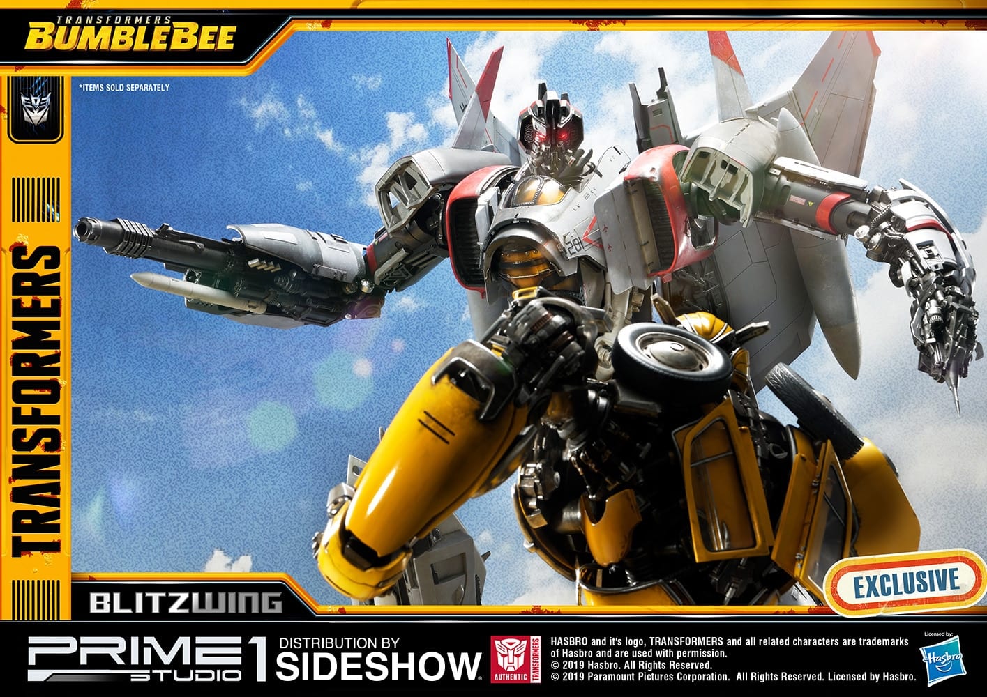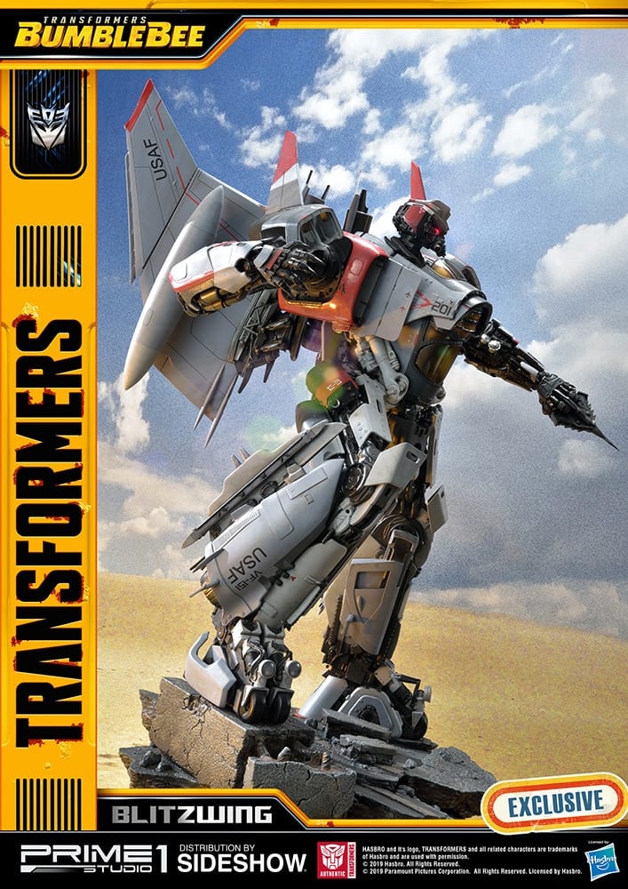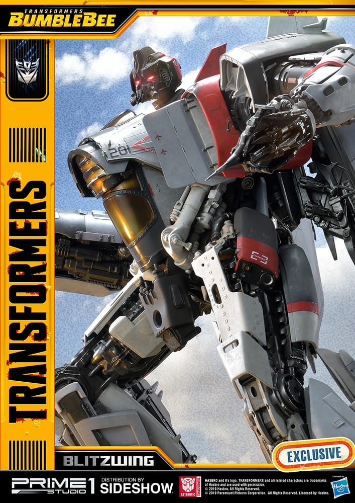 The Exclusive Blitzwing is carefully sculpted with an LED light-up feature on his head, includes several interchangeable parts as well as an exclusive left hand. The statue is perfect for recreating fight scenes of Bumblebee and Blitzwing.