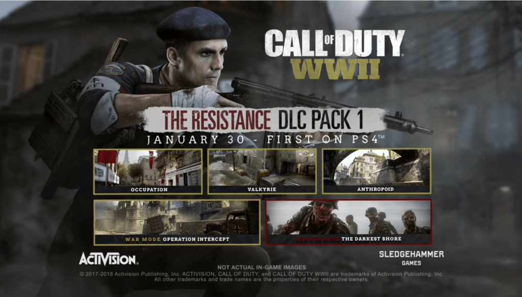 In addition to the next chapter of Nazi Zombies, ‘The Darkest Shore’ [watch the trailer here], The Resistance DLC Pack 1 adds the Operation Intercept war mode, as well as three new maps: Anthropoid, Valkyrie, and Occupation.