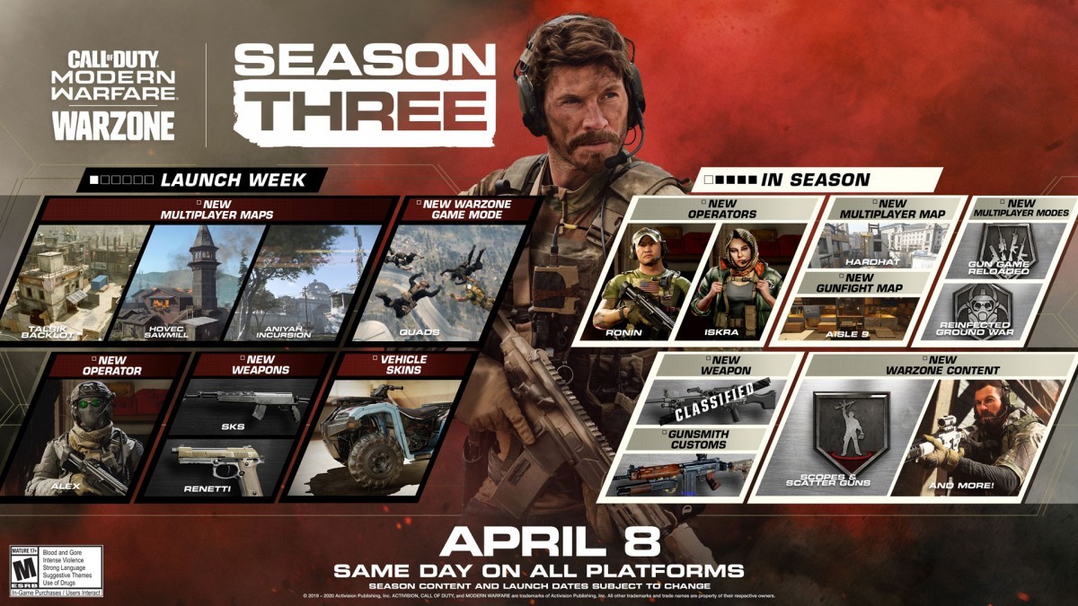 Activision has announced that launch of Season Three on Call of Duty: Modern Warfare and Call of Duty: Warzone, which includes a host of new content including multiplayer maps, operators, weapons and vehicle skins, as well as a brand new Warzone game mode.
