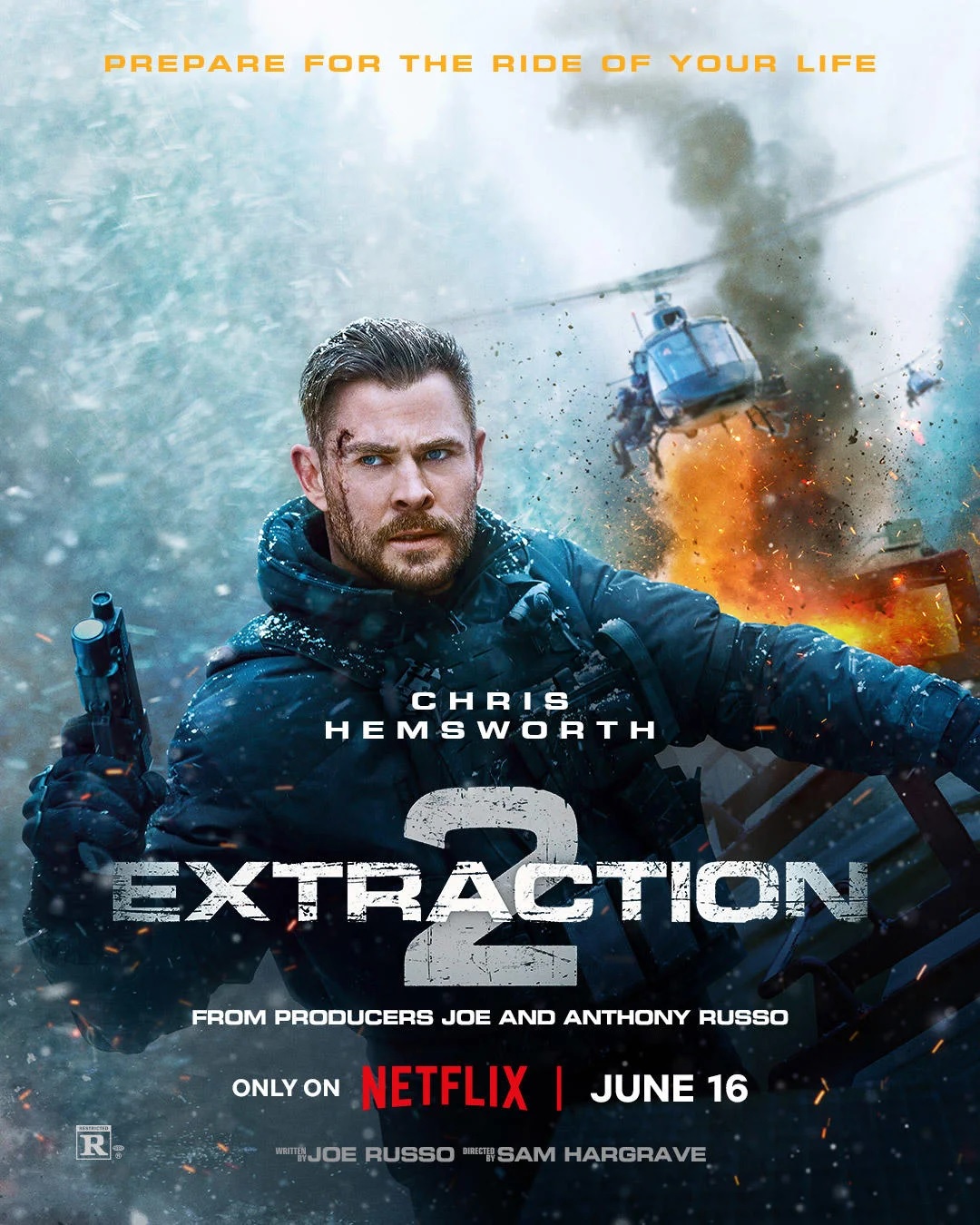 Chris Hemsworth returns as Tyler Rake in EXTRACTION 2, the sequel to Netflix’s blockbuster action film EXTRACTION. After barely surviving the events of the first movie, Rake is back as the Australian black ops mercenary, tasked with another deadly mission: rescuing the battered family of a ruthless Georgian gangster from the prison where they are being held.