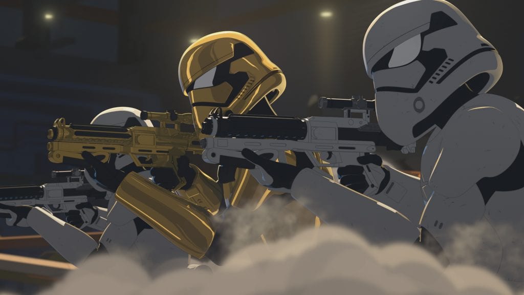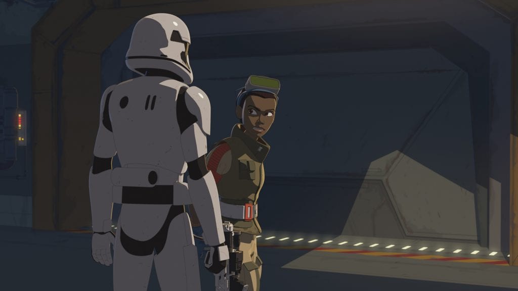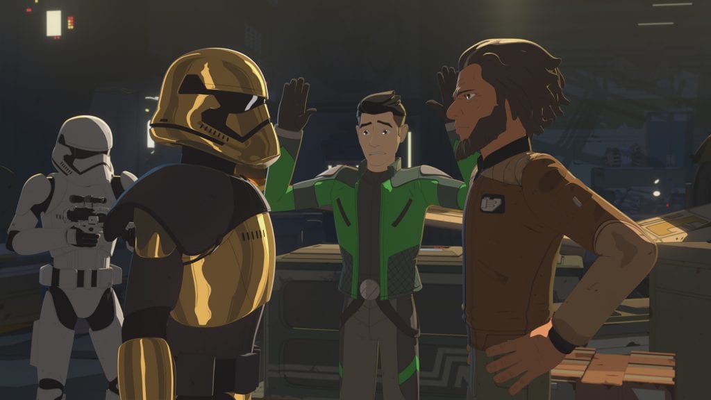 In “Descent,” After the First Order discover the Fireball was the ship that crossed into their territory, Yeager’s crew must evade troopers hunting them down. After realizing that Kaz and Yeager have been lying to her, Tam decides to stay with the troopers, convinced her own innocence will save her from the wrath of the First Order.