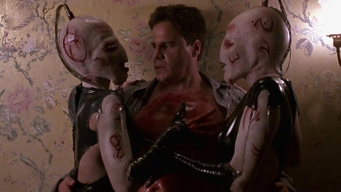 In Hell on Earth, we get Pinhead in a nightclub, killing the ravers and making quips. Doug Bradley gamely delivers his lines, but even he can’t completely rescue a Pinhead who has been totally rewritten as a slasher villain with higher production designs. That alien and elegant menace from the first movies was replaced with something that rhymes with it but means something very different.