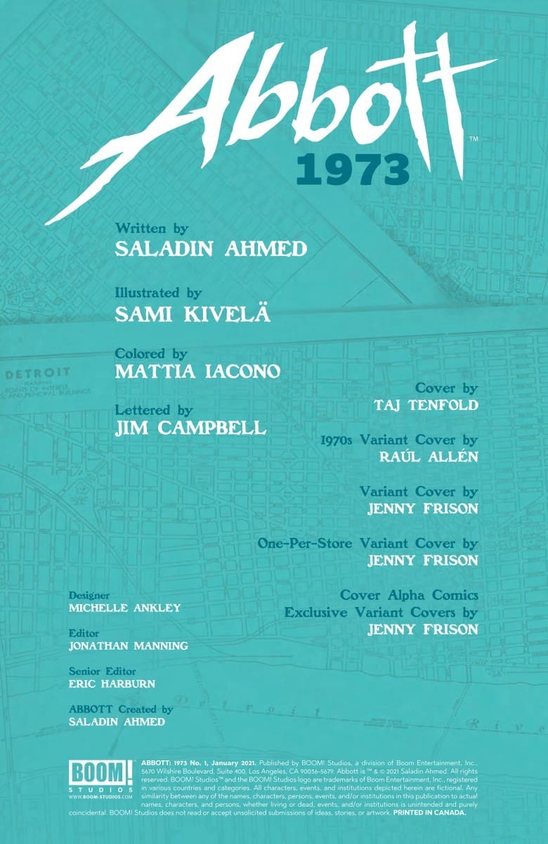 This week sees the launch of Abbott: 1973, a new series from writer Saladin Ahmed (Miles Morales: Spider-Man), and we’ve got a preview of the first issue for you here courtesy of Boom! Studios; take a look…