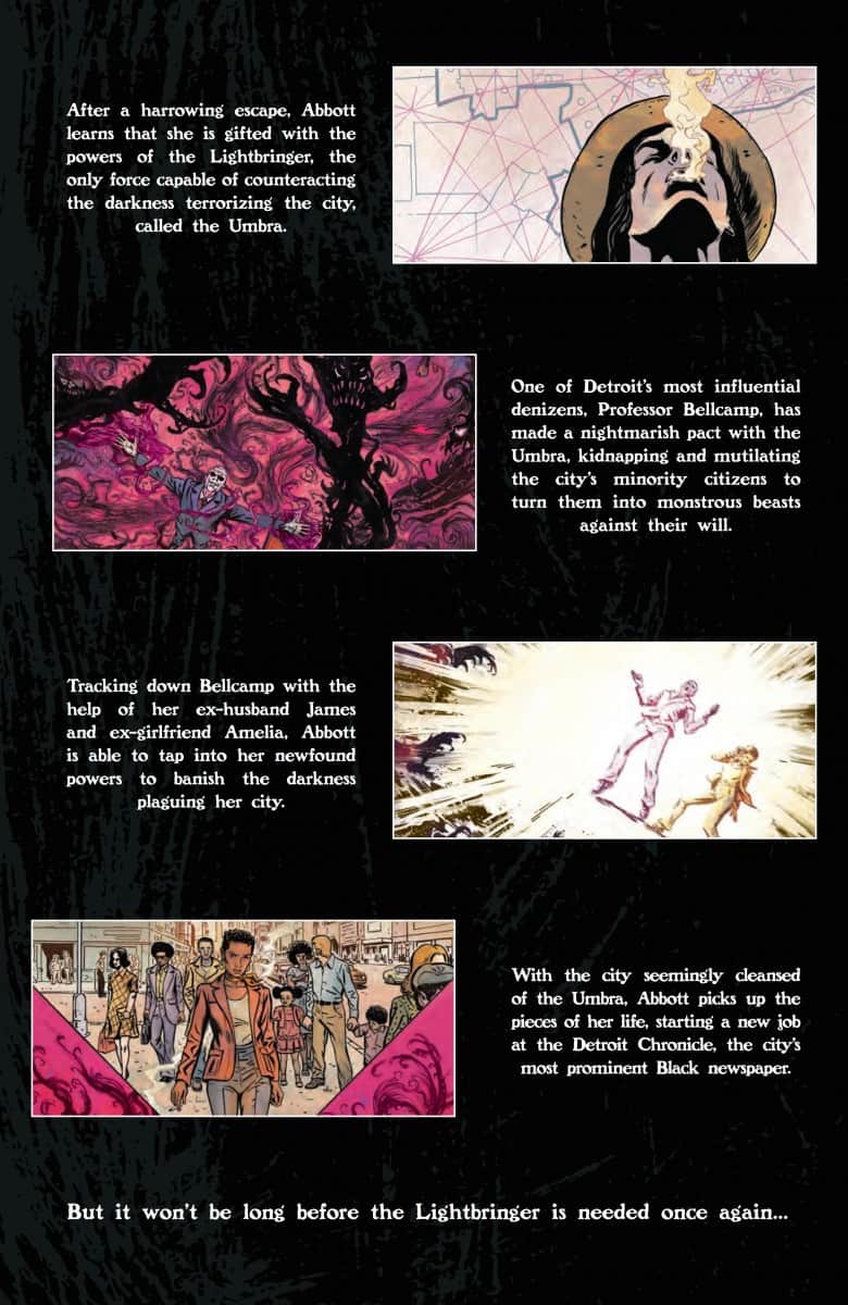 Detroit’s hardest hitting journalist, Elena Abbott, is trying to make a fresh start at a new newspaper…but her deadly past isn’t ready to let go. The city is days away from the historic election of a Black candidate as their new Mayor, but a vicious new group has emerged to destroy him, targeting anyone who supports his campaign or the change he represents. That means Abbott, who discovers the group’s connection to a dangerous dark magic, has been targeted for certain death – unless she embraces her true power as the Lightbringer to save her city.