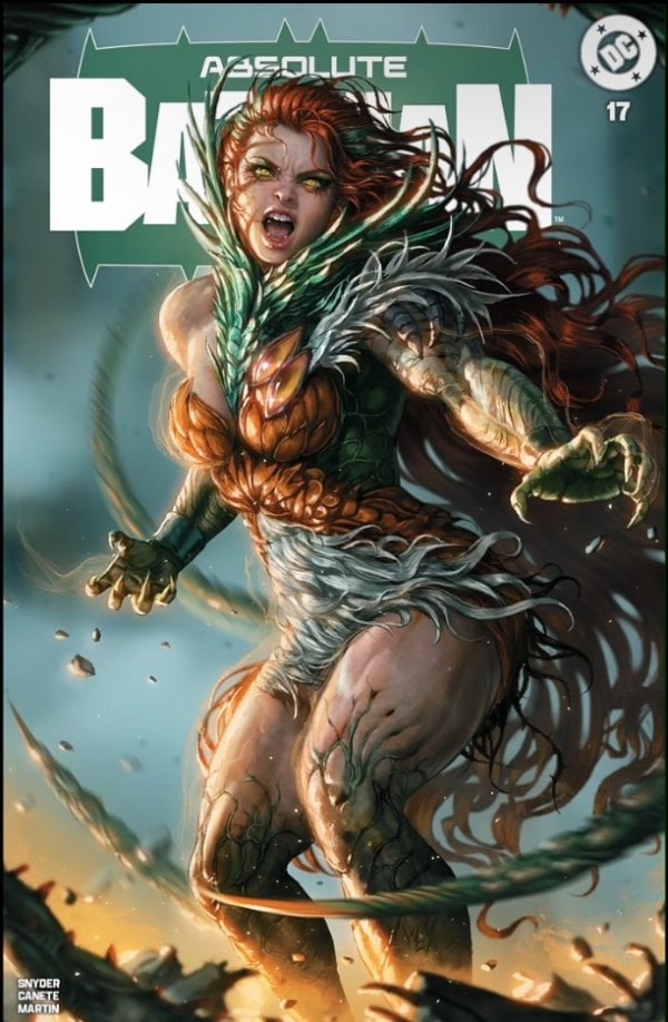 ABSOLUTE POISON IVY SINKS HER TEETH INTO ARK-M! Dr. Pamela Isley has been unleashed from the Ark-M facility with an unending hate and burning fire for revenge on Gotham City, and those who put her in the belly of the beast. When Batman hunts her down, he must survive a labyrinth of leveled horrors, one more gruesome after the next, as he tries to save the city from a monster it created.
