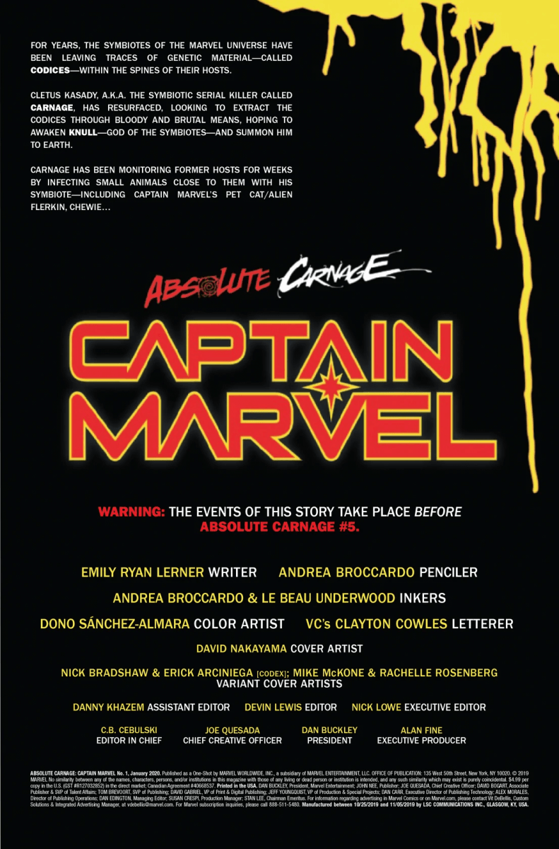 Absolute Carnage: Captain Marvel #1 is out on November 20th, priced $4.99.