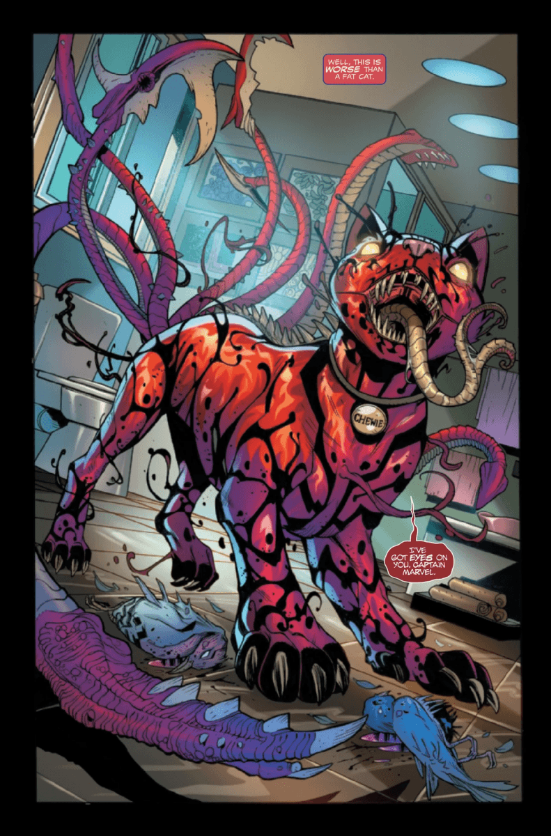 Chewie’s been Carnagized, and Carol ain’t happy about it! It’s Earth’s Mightiest Hero against a symbiotic space cat – what more could you need?!