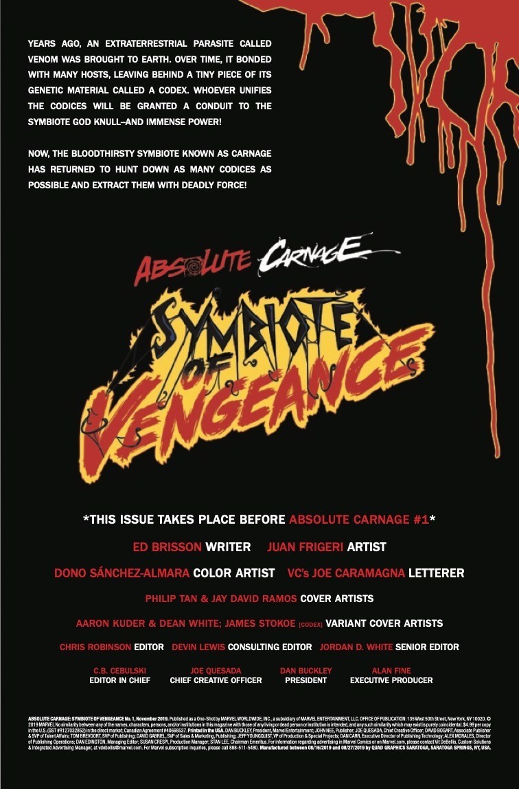 Absolute Carnage: Symbiote of Vengeance #1 is out on September 11th, priced $4.99.