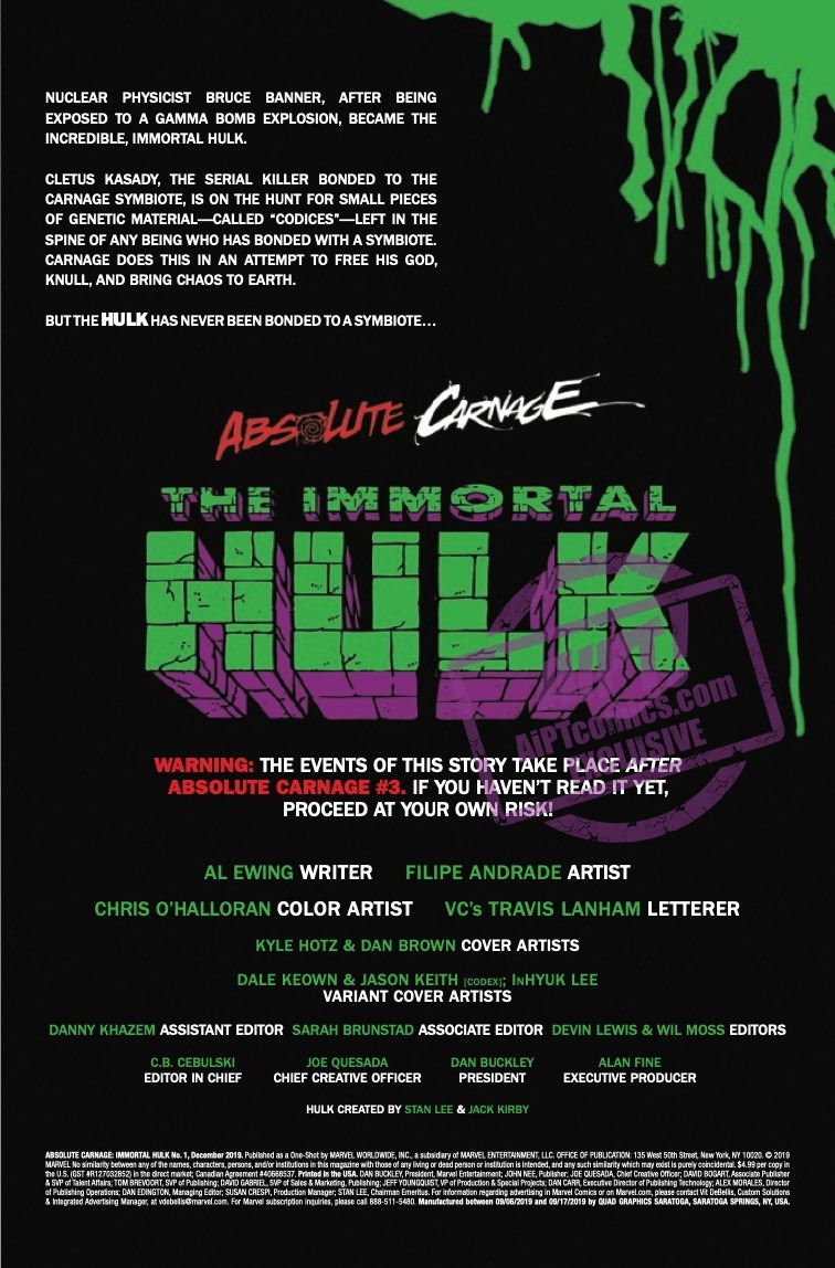 Absolute Carnage: The Immortal Hulk #1 is out on October 2nd, priced $3.99.