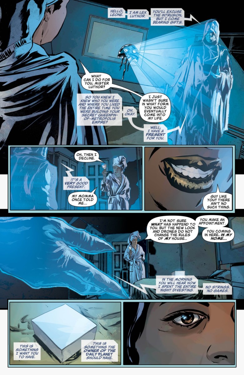 Metropolis is in total lockdown, and while everyone is busy dealing with the impossible threat of Leviathan’s complete takeover, a mysterious antihero called Thorn has decided to wreak havoc on the invisible empire! Witness the return of Rose and Thorn, the most dangerous woman in the DC Universe—and if you’ve never heard of her, it’s only because she is that good. All this, plus a major EVENT LEVIATHAN revelation! But why wasn’t it in the main series? Plus, the invisible mafia held a death grip on the Metropolis underworld…until Lex Luthor visits their criminal competition!