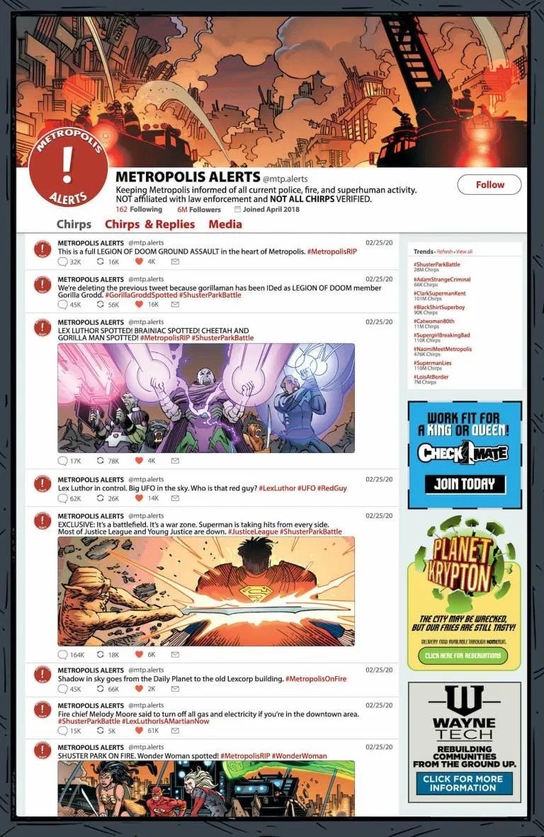 Metropolis down! The blockbuster supervillain team-up of the century continues. Leviathan! The invisible mafia! The Legion of Doom! All have descended on the city of Metropolis to challenge Superman at his most vulnerable moment. With the truth about the Man of Steel’s secret identity out in the open, all the rules of engagement have changed-and no one is safe! Guest-starring the Justice League and Young Justice.