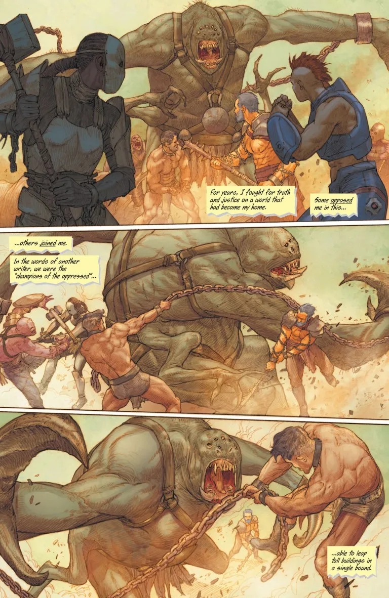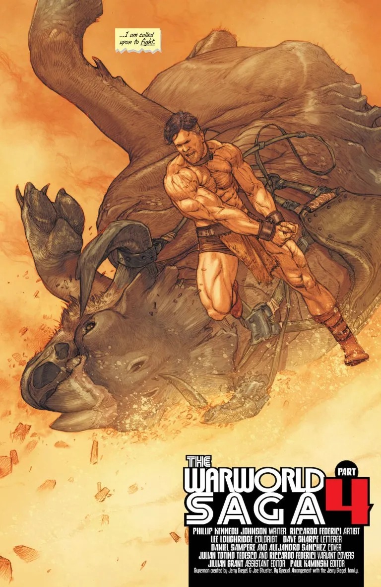 Everything has changed. After the heart-stopping events of Action Comics #1037, Superman and the surviving members of the Authority see a side of Warworld they never knew existed. In the lower catacombs, Superman finds another survivor of the lost Phaelosian race of Krypton, a scientist turned enslaved gladiator with much to teach Superman of his new home, including how to survive…and maybe, in time, how to escape. Meanwhile, Superman’s quest to turn the hordes of Warworld against their masters begins.