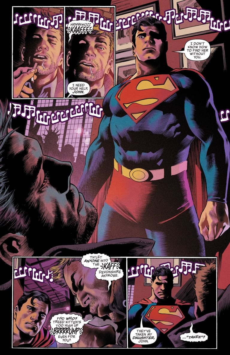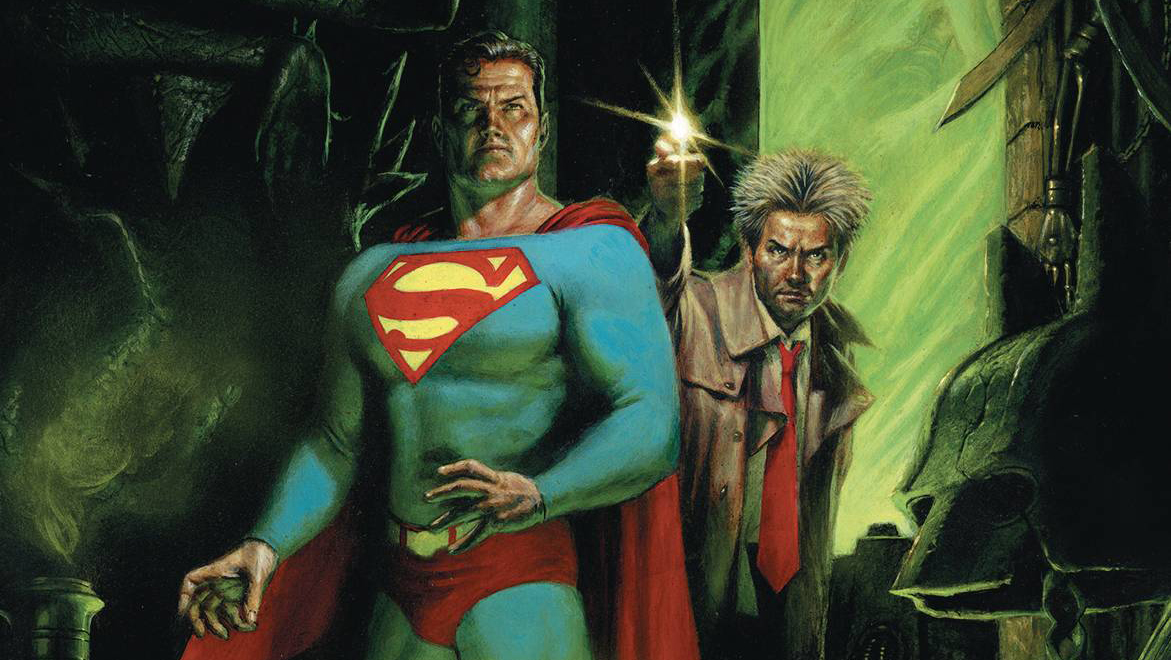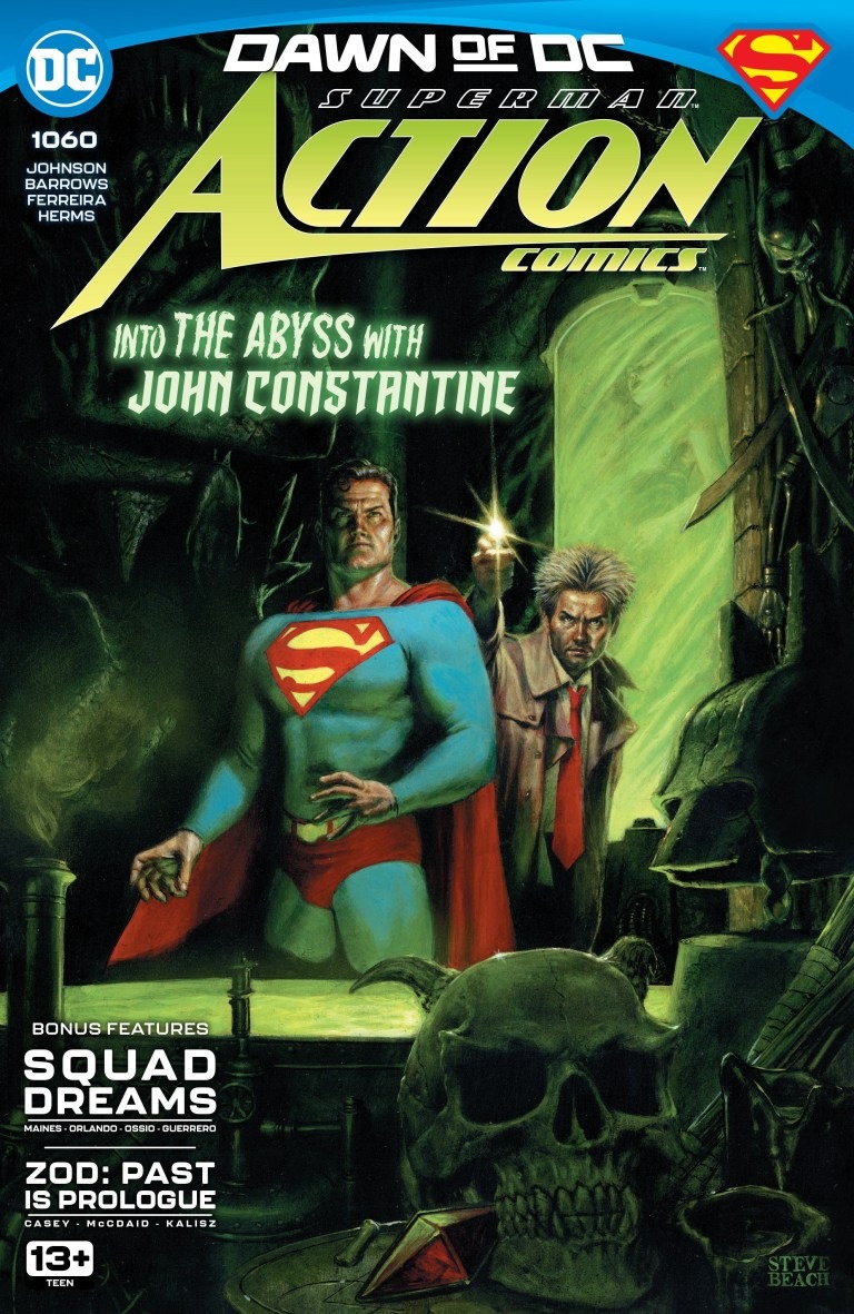 A mistake from Superman’s past has returned, and Metropolis hangs in the balance! As the super-family is betrayed from within and stripped of their powers one by one, Superman sets out on a suicide mission into the Multiverse alongside the unlikeliest of allies: Constantine, the demon Etrigan, and–making his return to Action Comics–Bloodwynd!