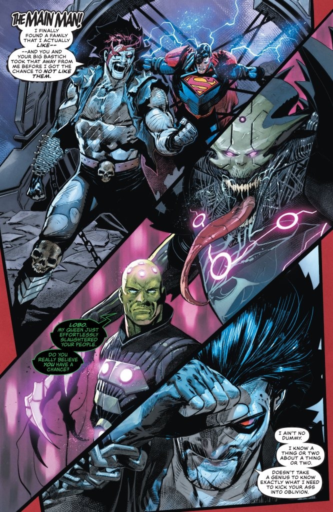 HOUSE OF BRAINIAC Part Five: THE BRAINIAC QUEEN IS ALIVE! Now that Brainiac has created his masterpiece, all bets are off, and Superman and his family are witness to a cosmic horror unlike anything they’ve ever seen. As we learn the true history of Brainiac, the main man, Lobo, must choose what side he is on before all hell breaks loose!