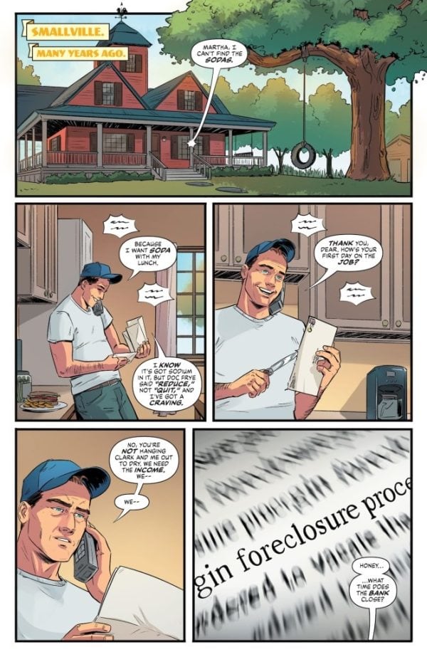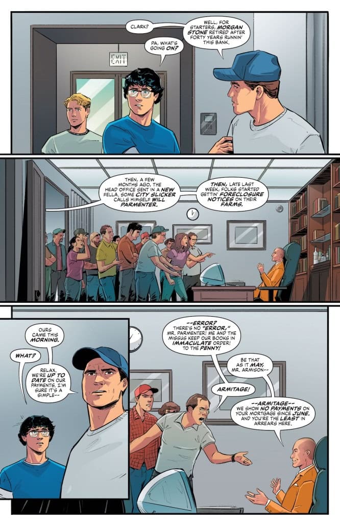 Hometown hero! Sometimes the battles worth fighting are at home in Smallville and not in the big city of Metropolis. After a poor harvest, the future of Kent Farm is on the line. So what do you do when superpowers can’t solve your problems? Superboy is about to find out!